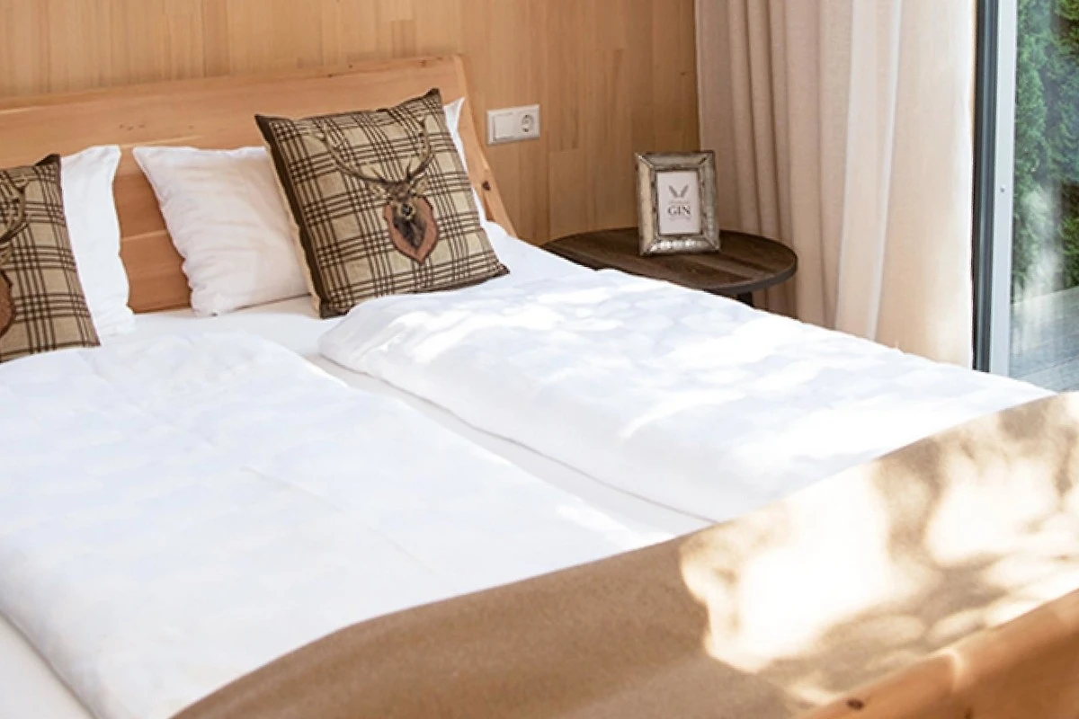 • Getrenntes Schlafzimmer mit Zirbelholzbett (Zusatzbett möglich)