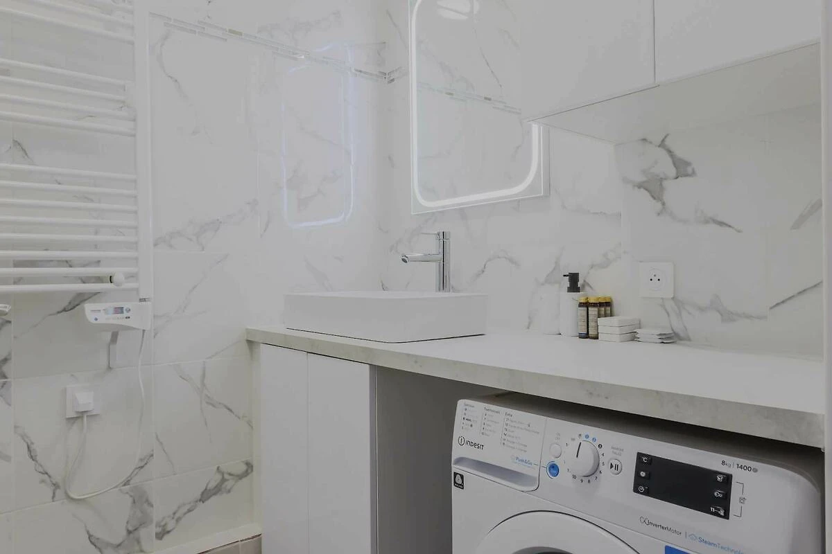 Die Wohnung ist ziemlich geräumig und verfügt über sehr bequeme Betten und ein gemütliches Sofa. Es gibt viele zusätzliche Handtücher, was ein Pluspunkt ist. Die Induktionskochplatten sind ideal zum Kochen, und eine Waschmaschine zu haben, ist sehr praktisch.