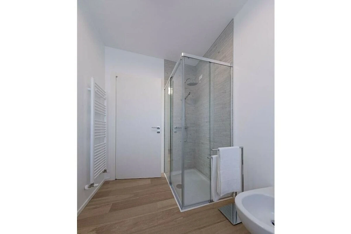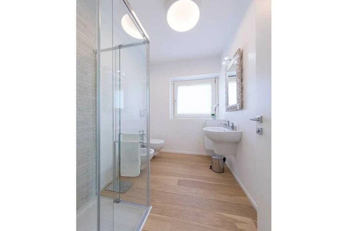 Im ersten Stock befindet sich auch ein zweites ausgestattetes Badezimmer mit Waschbecken, Bidet, Dusche und WC.