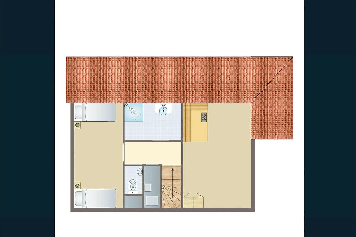 In der 1. Etage: (Schlafzimmer(Doppelbett), Schlafzimmer(Einzelbett, Einzelbett), Badezimmer(Dusche(ebenerdige Dusche), Waschbecken), Toilette, Flur)
