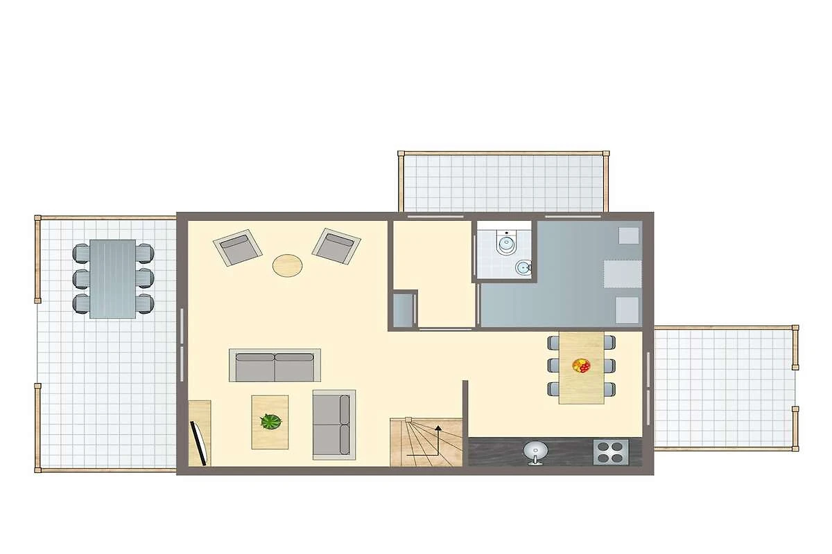 Anlegesteg, Waschmaschine, Gartentüren, Terrasse, Garten, Gartenmöbel, Parkplatz, Kinderbett, Hochstuhl