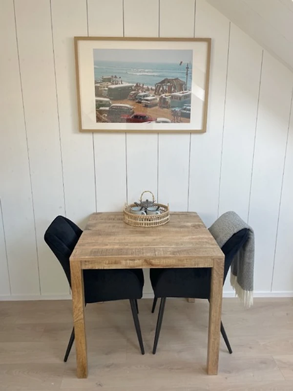 Der Esstisch mit 2 bequemen Stühlen steht neben der Küche. Außerdem steht der Smart-TV auf einem Eckschrank. Es gibt keine digitalen oder Kabelfernsehkanäle. Es gibt jedoch ein gutes WIFI. Sie können sich mit Ihrem eigenen Konto bei Streaming-Diensten wie Netflix, AmazonPrime oder YouTube bei smartTV anmelden.