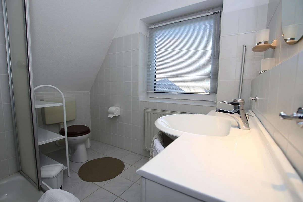 In der 1. Etage: (Wohnzimmer(TV), Schlafzimmer(Doppelbett(Boxspring, 180 x 200 cm)), Badezimmer(Dusche, Waschbecken, Toilette, Föhn))