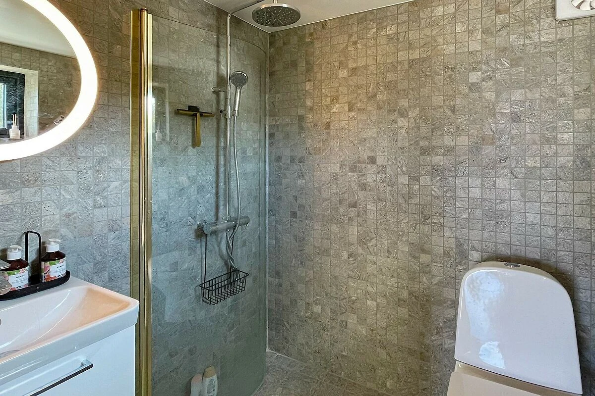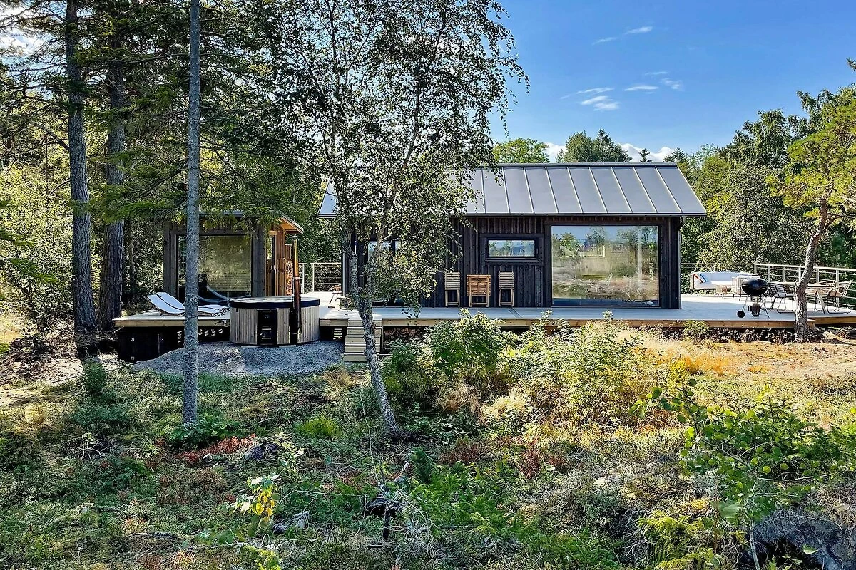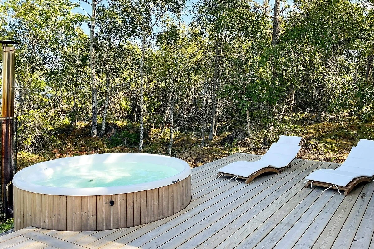 Willkommen in diesem fantastischen Ferienhäuschen von 2023, gelegen in einer magischen Umgebung auf Väddö in Norrtälje, nur einen Steinwurf vom Meer entfernt. Sie haben hier im Außenbereich Zugang zu einem holzbefeuerten Badezuber, einer Sauna und zugleich wunderschönen Meerblick in mehrere Richtungen! Innen offener Küchen-/Wohnbereich mit großzügiger Deckenhöhe und einem gemütlichen Schlafboden. Große Fenster, die einem Gemälde ähneln und eine friedliche Harmonie zwischen drinnen und draußen schaffen. Beginnen Sie Ihren Urlaubstag mit einem Sprung von den Klippen ins Meer oder warum nicht mit einem warmen Bad im Badezuber oder in der Sauna! Dies ist ein Ort zum Entspannen und für diejenigen, die etwas ganz Besonderes suchen! Das einladende Ferienhäuschen steht etwas erhöht auf einer Anhöhe und hat sowohl von der großzügigen Holzterrasse als auch von verschiedenen Zimmern im Haus atemberaubende Ausblicke auf den Schärengarten! Im Inneren vereinen sich Küche, Essbereich und Wohnzimmer in einem offenen Raum mit atemberaubendem Blick auf das Meer und ins Grüne. In der kleinen Küche können Sie kochen, während Sie auf das Meer blicken. Sie ist mit zwei Induktionskochfeldern, einem kombinierten Backofen/Mikrowelle, einer Kaffeemaschine und anderen wichtigen Utensilien ausgestattet. Die Küche öffnet sich zum Wohnbereich mit Esstisch. Hier können Sie Musik über Sonos AirPlay hören. Weiter drinnen finden Sie ein komfortables Schlafzimmer mit einem Doppelbett für zwei Personen (140 cm breit) und einem Smart-TV. Das Schlafzimmer hat eine eigene Tür, die hinaus zum holzbefeuerten Badezuber führt, der auch über eine Sprudelfunktion verfügt. Im Erdgeschoss befindet sich zudem ein stilvolles Badezimmer mit Dusche, Toilette und Waschbecken. Es gibt zwei weitere Schlafplätze oben auf dem gemütlichen Loft, das Sie über eine Leitertreppe erreichen. Die Leiter ist etwas steil und hat kein Geländer, also seien Sie bitte vorsichtig. Das Loft hat eine begrenzte Höhe, ist aber sehr bequem zum Schlafen. Eine große Terrasse umgibt das gesamte Ferienhaus, komplett ausgestattet mit einem Loungebereich, von dem aus Sie den Sonnenuntergang beobachten können, einem Esstisch für angenehme Abendessen, einem Holzkohlegrill und Sonnenliegen am Badezuber und der Sauna. Die Sauna ist von außen neben dem Badezuber zugänglich und sowohl der Badezuber als auch die Sauna werden eigenständig mit Holz befeuert. Es gibt auch eine Außendusche mit heißem Wasser für das Abduschen im Freien vor und nach dem Bad. Gut zu wissen! Der Eigentümer hat nebenan sein Ferienhaus und ist gelegentlich vor Ort, aber der größte Teil Ihres Außenbereichs ist abgeschieden und bietet Blick auf das Meer. Der Eigentümer hat auch eine Ladestation für Elektroautos über Wallbox, die Sie nutzen können, aber Sie müssen den tatsächlichen Verbrauch vor Ort bezahlen. Es gibt auch einen Basketballplatz, an dem Sie vorbeifahren, wenn Sie zum Haus fahren, und den Sie gerne nutzen können! Nur einen Steinwurf entfernt können Sie von den Klippen aus ein abgeschiedenes Bad im Meer genießen, wo Sie auch angeln können. Wenn Sie einen Sandstrand bevorzugen, ist Sandvikens Camping etwa 1 km entfernt. Auf Väddö gibt es viel zu entdecken – machen Sie einen Ausflug nach Gamla Grisslehamn oder Gåsvik, um feines Design von Edblad zu sehen, trinken Sie einen Kaffee bei Kröns Trädgård oder genießen Sie eine köstliche Mahlzeit bei Ankaret oder Bonden och Burgaren. Die Liste geht weiter – willkommen in Roslagen und im Stockholmer Schärengarten!