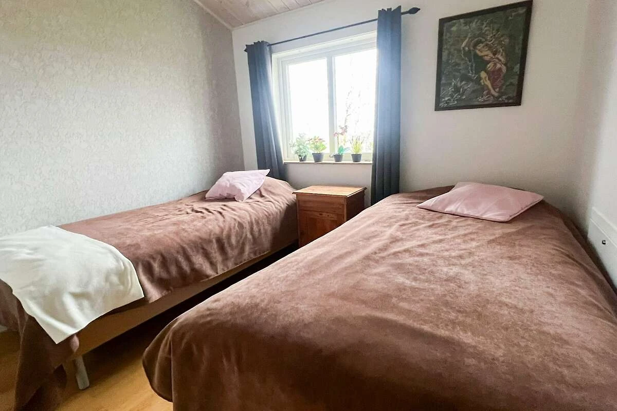 Newly renovated cottage with feeling of space. This cottage, which can accommodate up to 6 people, is completely renovated and has everything you need. The cottage has a fantastic ceiling height, which gives the entire accommodation a wonderfully airy feeling. The kitchen is brand new, with everything you could possibly need, the dining room and living room are connected. There are two bedrooms, one with a double bed and one with two single beds. There is a sofa bed (150cm wide) in the living room if you would like to be more than four. The cottage is located on the owner's property in the community of Bredaryd. Here you are close to most things, about 20km away you have Värnamo with restaurants, cafes and shopping. 16 km away you will find High Chapparal, 19km away is Stora Mosse National Park, and 36km away is Isaberg Mountain resort. So the perfect starting point for exploring the surrounding area. Not far from the cottage is a slightly larger road so at certain times you can hear the traffic. There is a charger for electric cars, but there is an additional cost if you want to use it.
