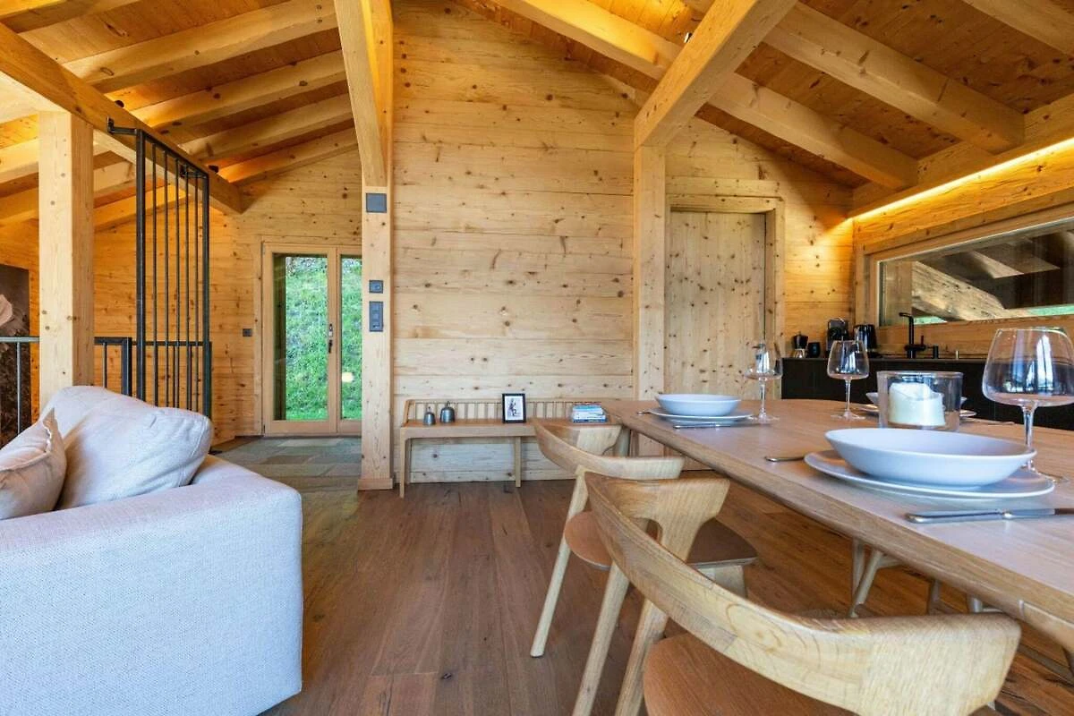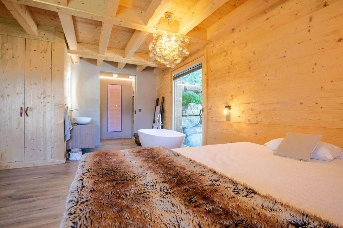 Das Chalet verfügt über zwei geräumige Doppelzimmer, eines mit Badewanne im Zimmer, einer Schiebetür zu Toilette und Waschbecken und das andere mit einer klappbaren Matratze und einem kleinen Schreibtisch. Genießen Sie das elegante italienische Duschbad mit Toilette und Waschbecken. Draußen bietet das Chalet eine kleine Terrasse mit Gartenmöbeln und einen Balkon mit atemberaubender Aussicht auf die Berge. Mit einfachem Zugang zu zwei Parkplätzen sorgt das Chalet für Ihren Komfort während Ihres gesamten Aufenthalts.