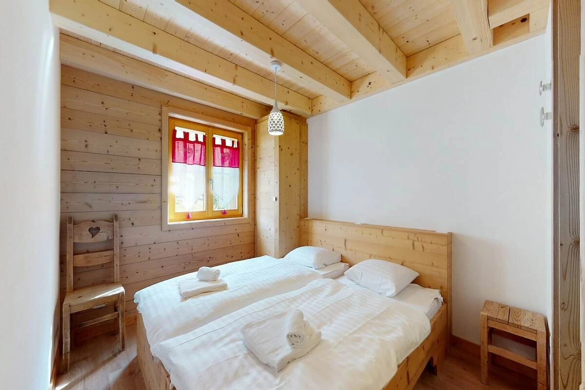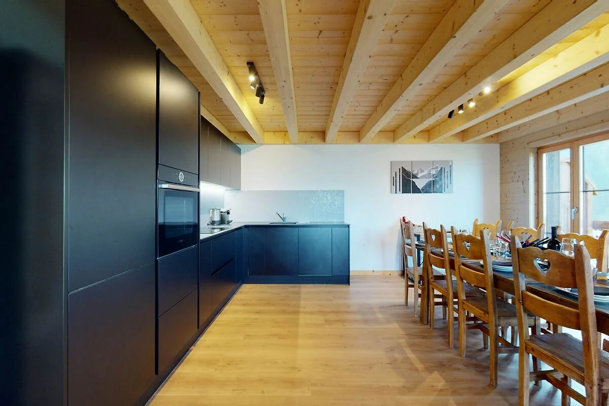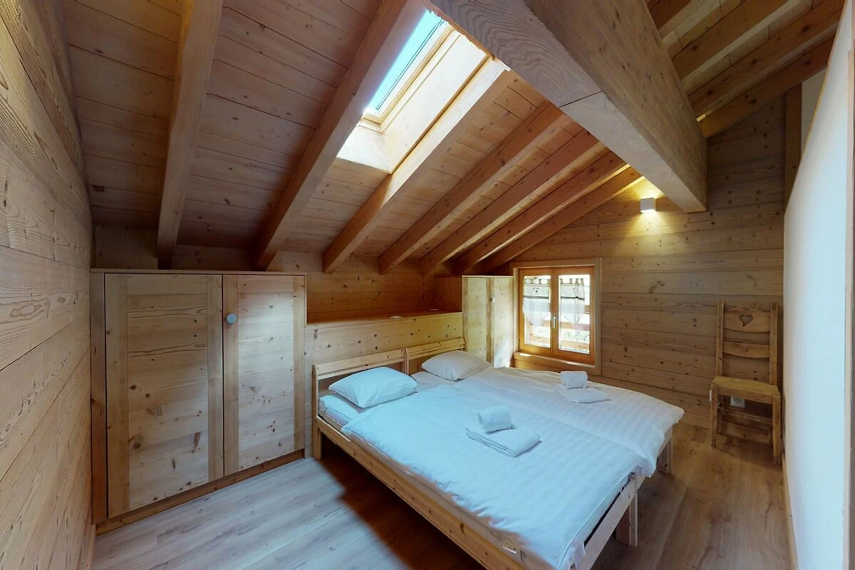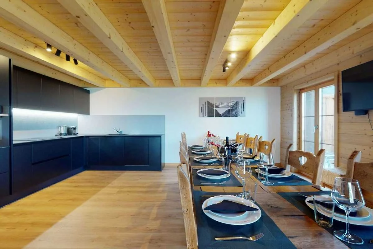 Die offene Küche ist komplett mit modernen Geräten ausgestattet, darunter Kühlschrank, Gefrierschrank, Geschirrspüler, Backofen und Fonduetopf – so wird die Zubereitung von Mahlzeiten zum Kinderspiel. Die Wohnung bietet vier komfortable Schlafzimmer – zwei mit Einzelbetten, eines mit zusammengeschobenen Einzelbetten und ein weiteres mit zwei Einzelbetten – sowie drei Badezimmer mit Badewanne und WC und eines mit Dusche und WC.