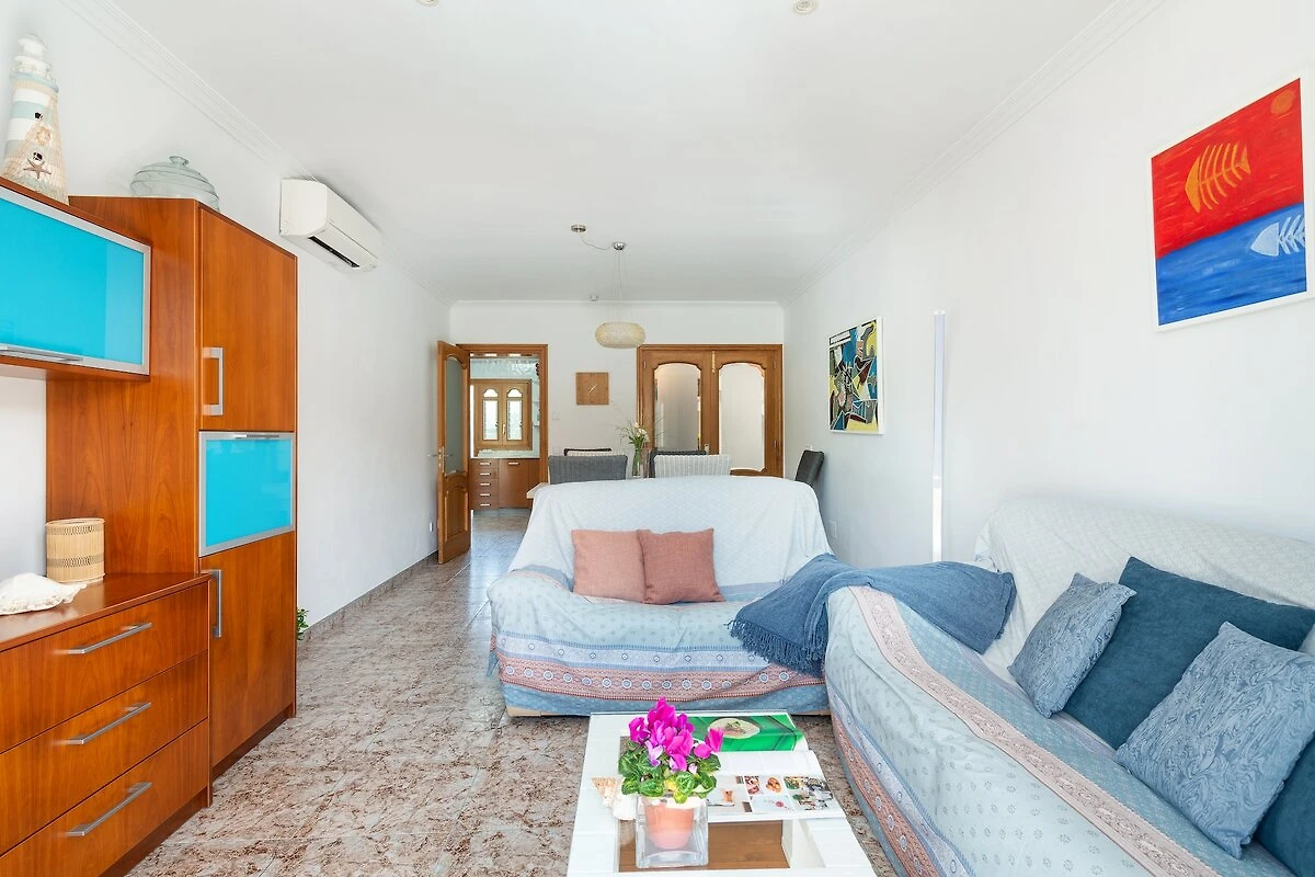 Das schöne Einfamilienhaus hat 2 Etagen.Durch den kleinen Eingangsbereich kommen Sie in das helle, klimatisierte Wohn - Esszimmer. Machen Sie es sich bequem und schauen Sie einen Film im Sat TV oder lesen Sie ein gutes Buch. Der Essbereich hat Platz für 8 Personen. In der klimatisierten Küche, mit Keramikkochfeld, werden Sie nichts vermissen, um Ihre Lieblingsgerichte zu kochen. Natürlich gibt es auch eine Waschmaschine, Bügelbrett und Bügeleisen. Von den insgesamt 4 klimatisierten Schlafzimmern mit je einem Schrank befindet sich 1 mit Doppelbett im Erdgeschoss. Die anderen 3 Schlafzimmer, 1 mit 2 Einzelbetten, 2 mit je einem Doppelbett sind in der ersten Etage. Zwei dieser Zimmer haben eine Ausgang auf die Terrasse der ersten Etage. Es gibt zwei Badezimmer mit einer Dusche im Erdgeschoss. Im Obergeschoss teilen sich die Bewohner ein Bad mit Wanne. Auf Anfrage wird ein Babybett und Hochstuhl bereitgestellt.