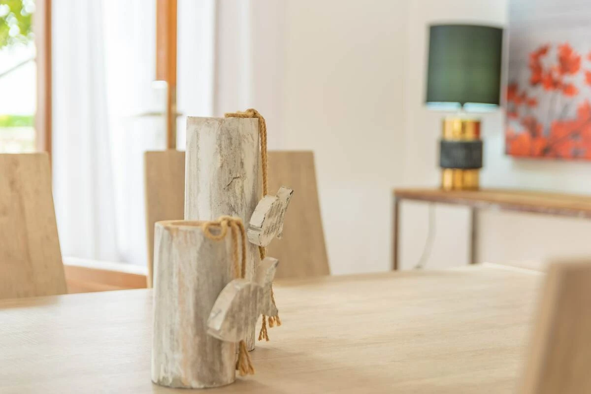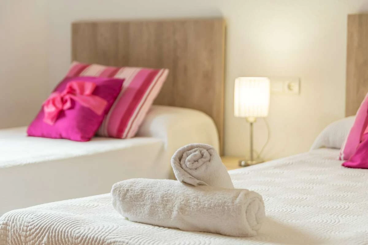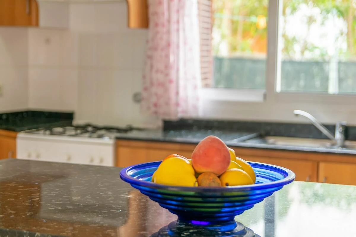 Im 2-stöckigen Haus überzeugen großzügige Räume mit einer geschmackvollen Einrichtung. Jede Etage hat ein unabhängiges Apartment mit: einem großen Wohn- Esszimmer - mit Sat-TV und Zugang zur Veranda oder Terrasse, das über einen koketten Bartresen mit der Küche verbunden ist. In der Küche kochen Sie auf einem Gasherd und haben dafür alle Utensilien die Sie benötigen. Es gibt in jedem Apartment zwei Schlafzimmer, eines mit Doppelbett und das andere mit zwei Einzelbetten; und ein Badezimmer mit Dusche. Alle Schlafzimmer sind klimatisiert. Das Apartment der ersten Etage ist über eine Treppe außerhalb des Gebäudes zu erreichen. Die obere Dachterrasse mit Sonnenliegen ist vom ersten Stock aus zugänglich. Das Haus ist mit einer Waschmaschine, einem Bügeleisen und Bügelbrett ausgestattet und wir können auf Anfrage ein Kinderbett und einen Hochstuhl vorbereiten, wenn Sie mit Ihrem Baby reisen.