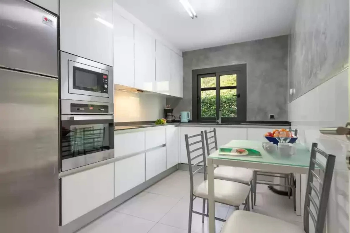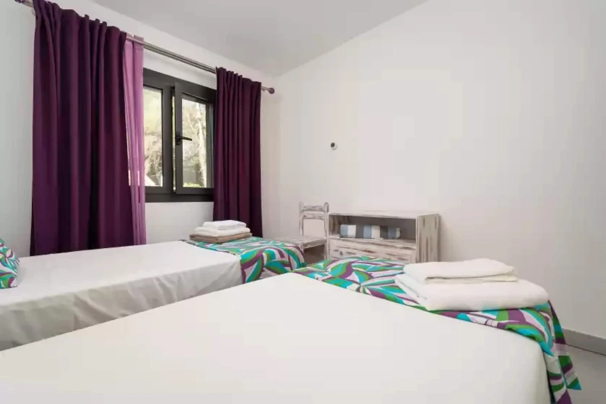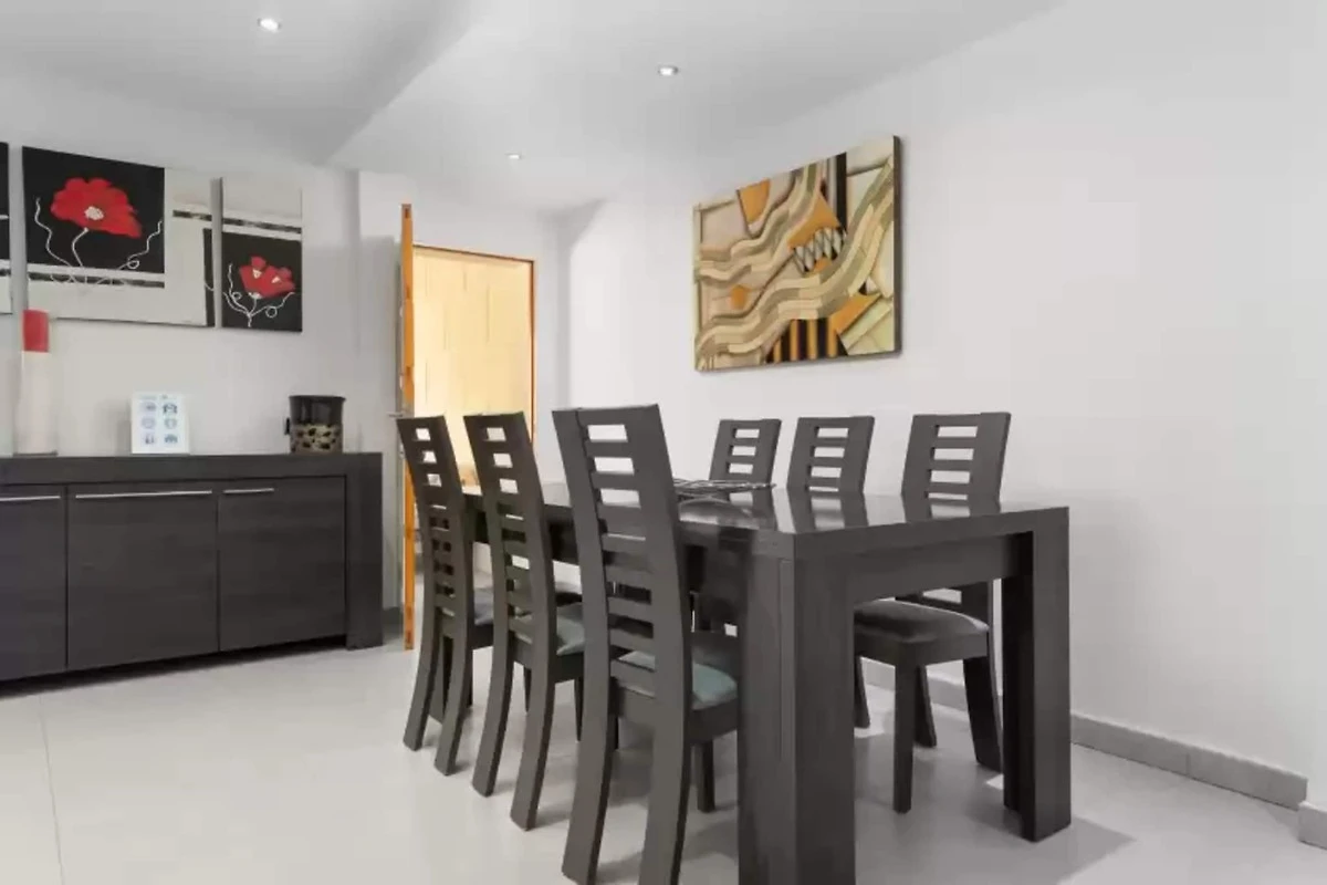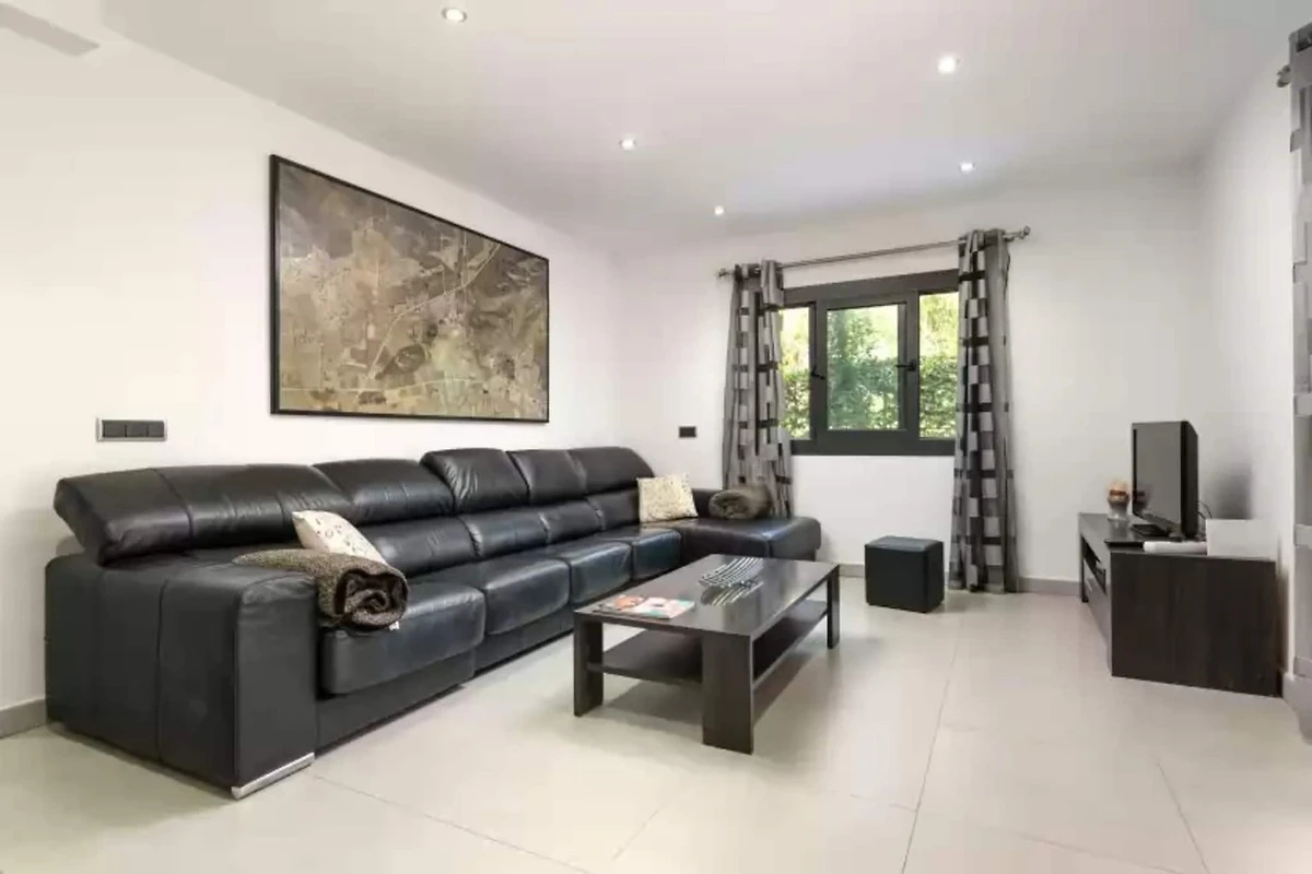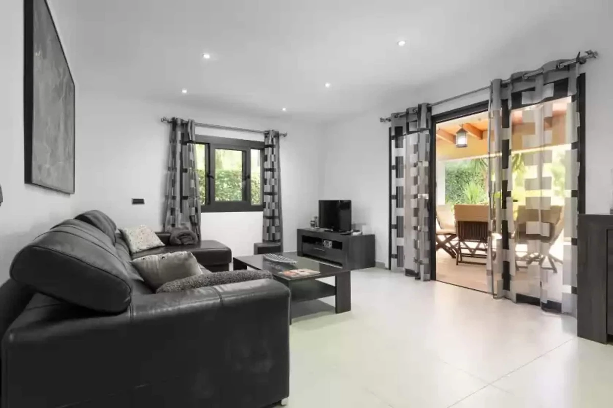 Alle Räume des einstöckigen Gebäudes sind klimatisiert. Sie betreten ein Wohn-Esszimmer mit Smart TV und bequemen Sofa. In der Küche kochen Sie auf einem Cerankochfreld und haben dafür alle Utensilien die Sie benötigen. Es gibt insgesamt drei Schlafzimmer, eines mit einem Doppelbett und die anderen beiden mit je zwei Einzelbetten, alle verfügen über je einen Kleiderschrank. Die 2 Bäder, eines mit Dusche das andere mit Badewanne, werden von allen Bewohnern benutzt. Eine Waschmaschine, Bügeleisen und Bügelbrett sind vorhanden. Wenn Sie mit Ihrem Baby reisen, können wir auf Anfrage ein Kinderbett und einen Hochstuhl zur Verfügung stellen.