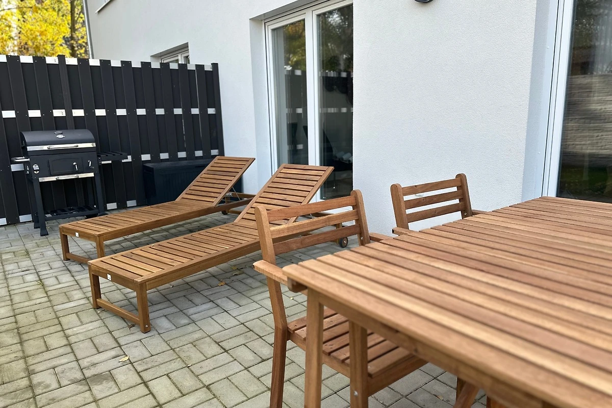 - kleiner aber feiner Garten mit gemütlichen Gartenmöbel und Holzkohlegrill – perfekt für entspannte Grillabende