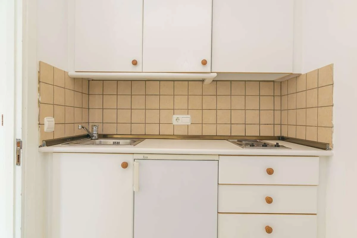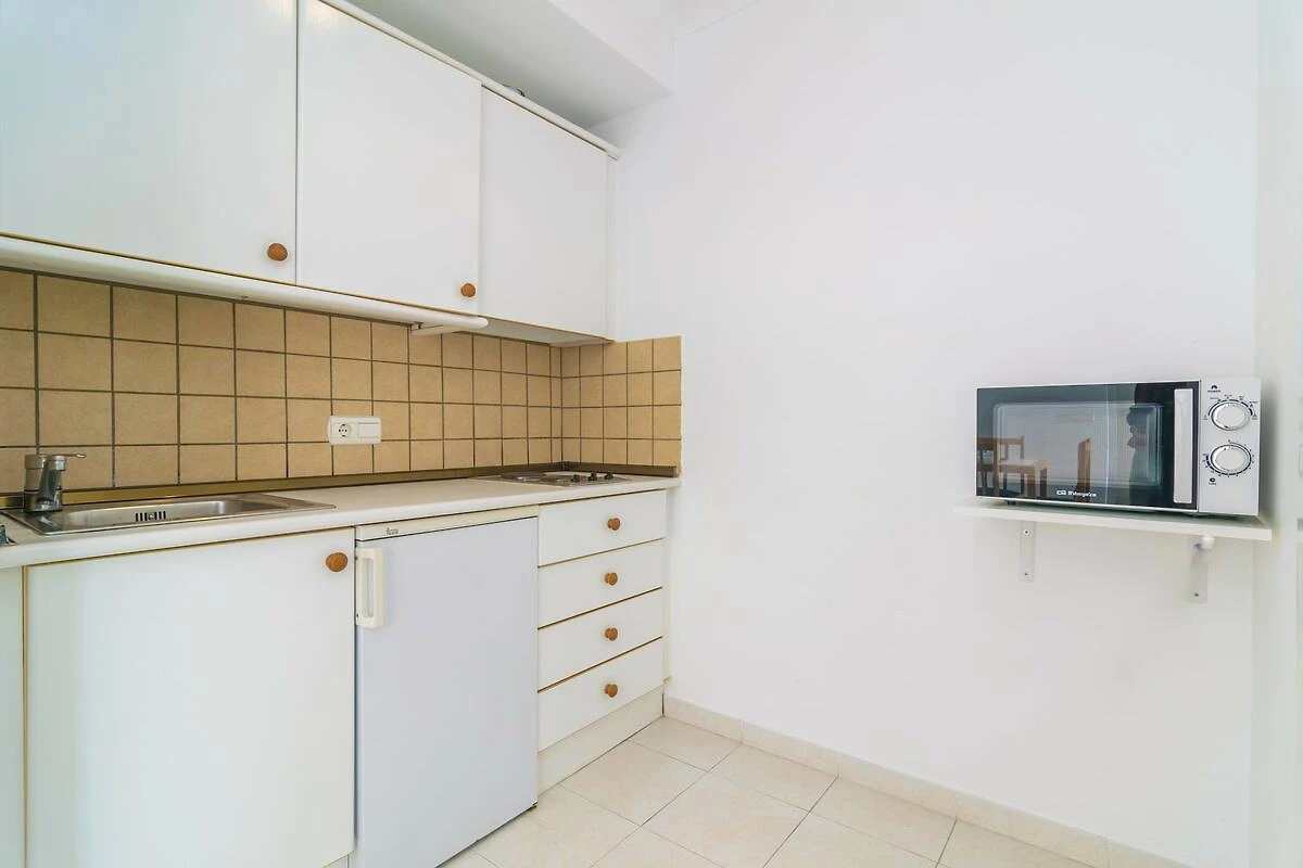Dieser erste Stock, ohne Aufzug, bietet einen komfortablen und funktionellen Raum, der Küche, Esszimmer und Wohnzimmer kombiniert. Hier können Sie sich auch auf dem Sofa entspannen, SAT-TV schauen, begleitet von der Klimaanlage (nur kalte Luft), nachdem Sie die köstlichen Gerichte auf dem Elektroherd zubereitet haben. Bitte beachten Sie, dass die Küche nur einfach ausgestattet ist und weder Waschmaschine noch Bügeleisen oder Bügelbrett zur Verfügung stehen. Es gibt zwei Schlafzimmer mit zwei Einzelbetten, Klimaanlage (nur kalte Luft) und Kleiderschrank. Ein Zimmer bietet Platz für ein Kinderbett und einen Hochstuhl, und das zweite Zimmer hat Zugang zu einer kleinen Terrasse. Das Zusatzbett kann auf dem Schlafsofa untergebracht werden. Das Badezimmer ist mit einer Dusche ausgestattet.