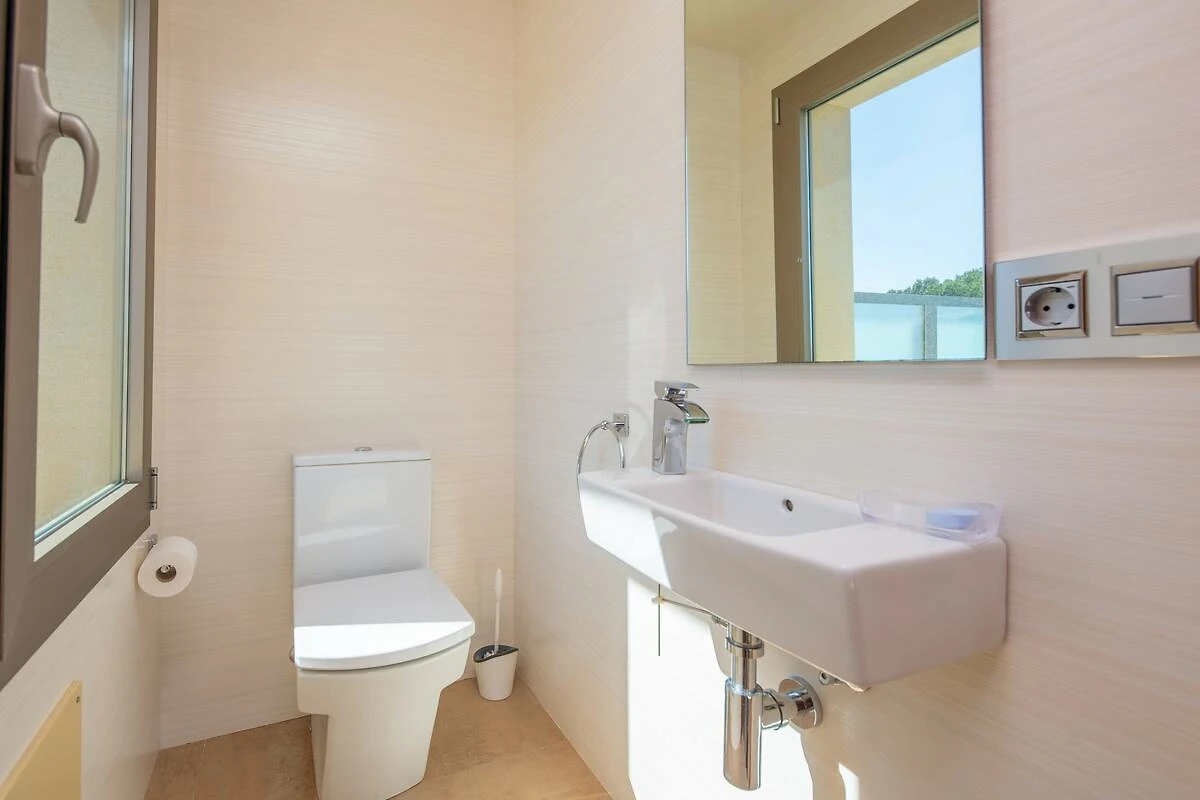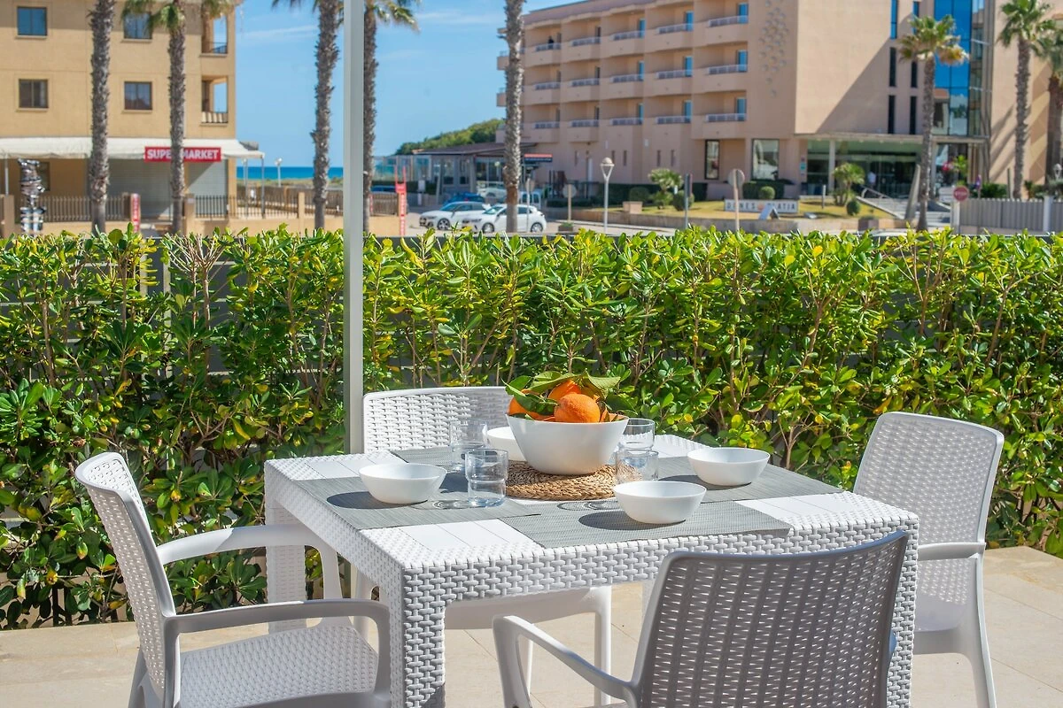 Draußen bieten die drei Terrassen Platz zum Entspannen und Genießen des mediterranen Klimas. Die Terrasse im Erdgeschoss lädt zum Essen im Freien, Sonnenbaden oder Entspannen mit einem Getränk nach einem Tag am Strand ein. Das Anwesen hat nahegelegene Nachbarn, was ein gemütliches, aber verbundenes Erlebnis mit der lokalen Umgebung ermöglicht.