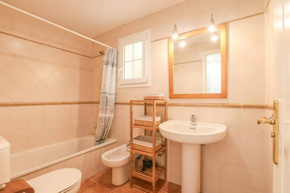 Die Wohnung liegt im ersten Stock und ist sehr gemütlich eingerichtet. Auf der möblierten Terrasse können Sie Ihren Morgenkaffee genießen oder sich mit Ihren Begleitern unterhalten. Das Wohn-Esszimmer ist sehr hell und mit Klimaanlage und Smart-TV ausgestattet. Die Glaskeramik-Küche ist mit allen notwendigen Utensilien ausgestattet, um bequem zu kochen. Es gibt auch eine Waschmaschine, ein Bügeleisen und ein Bügelbrett. Wenn es Zeit zum Schlafen ist, stehen Ihnen zwei Schlafzimmer zur Verfügung, eines mit einem Doppelbett und eigenem Bad mit Badewanne und direktem Zugang zur Terrasse und das andere mit zwei Einzelbetten. Ein Badezimmer mit Dusche vervollständigt Ihren Aufenthalt. Und wenn Sie mit Ihrem Baby reisen, können wir Ihnen ein Kinderbett und einen Hochstuhl zur Verfügung stellen.