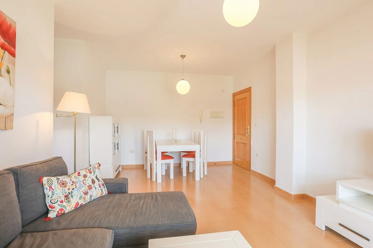 Die Wohnung befindet sich in der ruhigen Urbanisation Las Palmeras Golf 2, perfekt für einen erholsamen Urlaub. Im Außenbereich finden Sie einen großen Gemeinschaftspool von 25m x 15m und einer Tiefe zwischen 1,20 und 1,90 Metern, der ideal für eine Abkühlung an heißen Sommertagen ist. Die Urbanisation verfügt auch über einen Tennisplatz, der Ihnen die Möglichkeit bietet, ein freundschaftliches Tennisspiel zu genießen oder Ihre Tennisfähigkeiten während Ihres Urlaubs zu verbessern. Die private Terrasse ist der perfekte Ort, um einen Aperitif mit Ihren Freunden zu genießen.