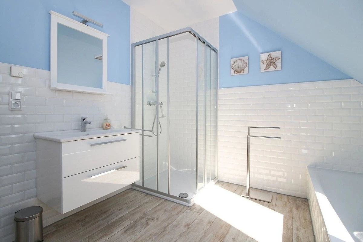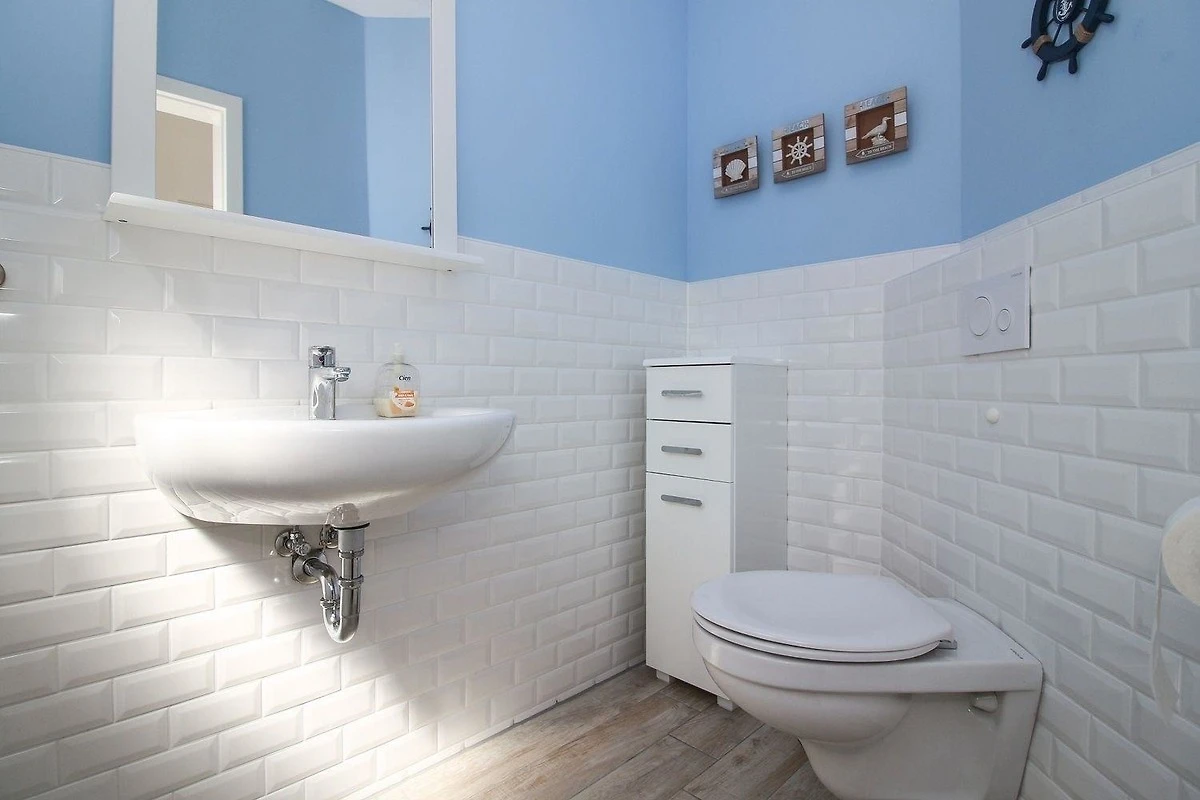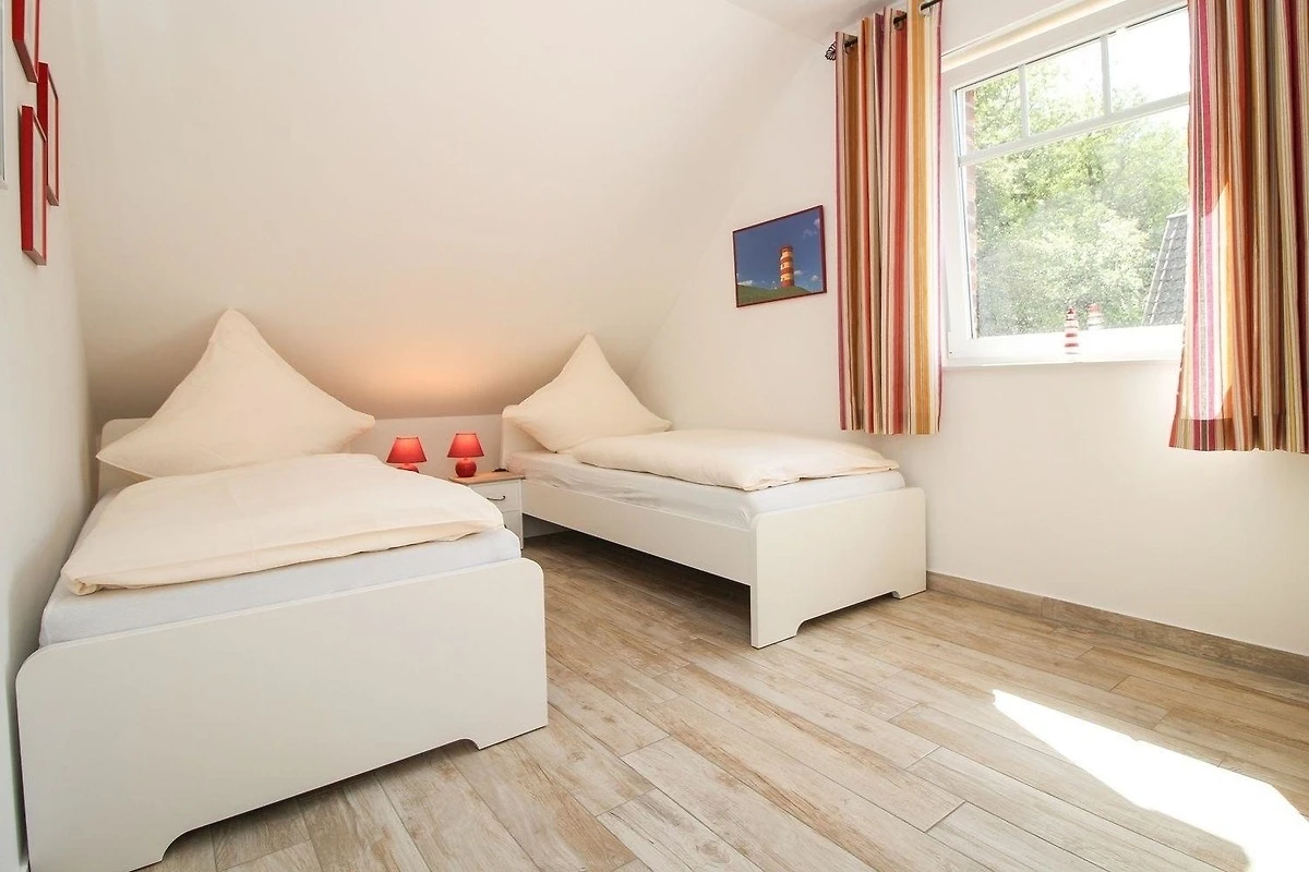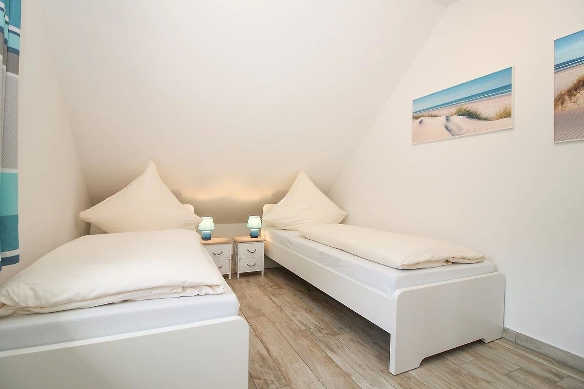 Auf den ca. 110 m² Wohnfläche erwarten Sie eine komplett ausgestattete Küche, ein Gäste-WC, ein Wohnzimmer mit integriertem Essbereich für 6 Personen und ein zusätzlicher Raum mit Infrarot-Sitzsauna. . Im Obergeschoss befindet sich das Schlafzimmer mit einem Doppelbett sowie zwei weitere Schlafzimmer mit jeweils zwei Einzelbetten. Zudem steht Ihnen auf dieser Etage ein Bad mit Wanne und Dusche zur Verfügung.