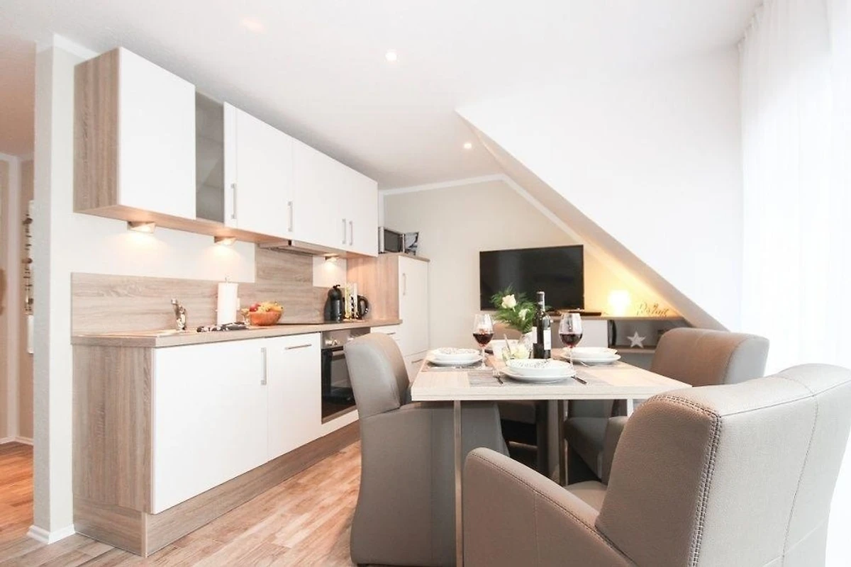 Die mit vielen Extras eingerichtete Küche bietet u.a. einen Herd mit Ceranfeld und Umluft-Backofen, Kühlschrank mit Gefrierfach, Geschirrspüler und Mikrowelle mit Sonderfunktionen. Selbstverständlich finden Sie auch einen Toaster, Wasserkocher, 3 verschiedene Kaffeemaschinen...