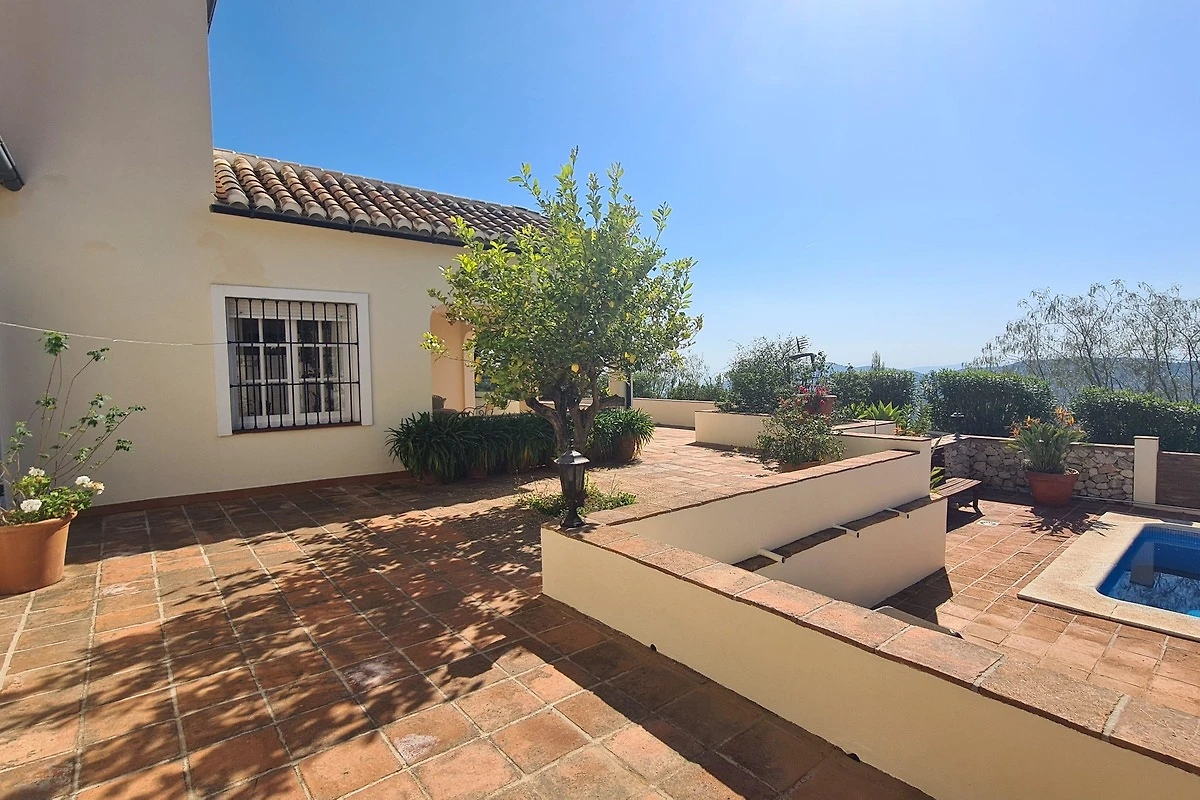Der Aussenbereich der Villa Atréju bietet alles für einen entspannten Urlaub: Ein privater Pool lädt zum Schwimmen und Sonnen ein, umgeben von einer grosszügigen Terrasse mit Liegestühlen und Sitzmöglichkeiten. Der mediterrane gepflegten Garten bietet Raum zum Entspannen und Träumen. Auf der überdachten Terrasse finden Sie einen gemütlichen Essbereich für gemeinsame Mahlzeiten im Freien. Geniessen Sie die Ruhe und den Blick zu den Bergen, ins Tal und bis zum Mittelmeer – perfekt für Erholung und unvergessliche Urlaubsmomente!