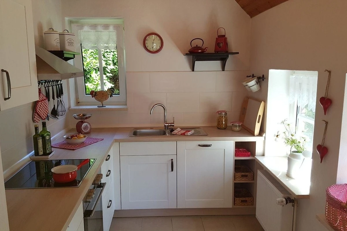 Die Landhausküche verfügt über einen Herd mit Cerankochfeld, Backofen, Spülmaschine, Kühlschrank, Toaster, Kaffeemaschine, Wasserkocher, Mixer, ausreichend Geschirr und alle notwendigen Küchenutensilien.