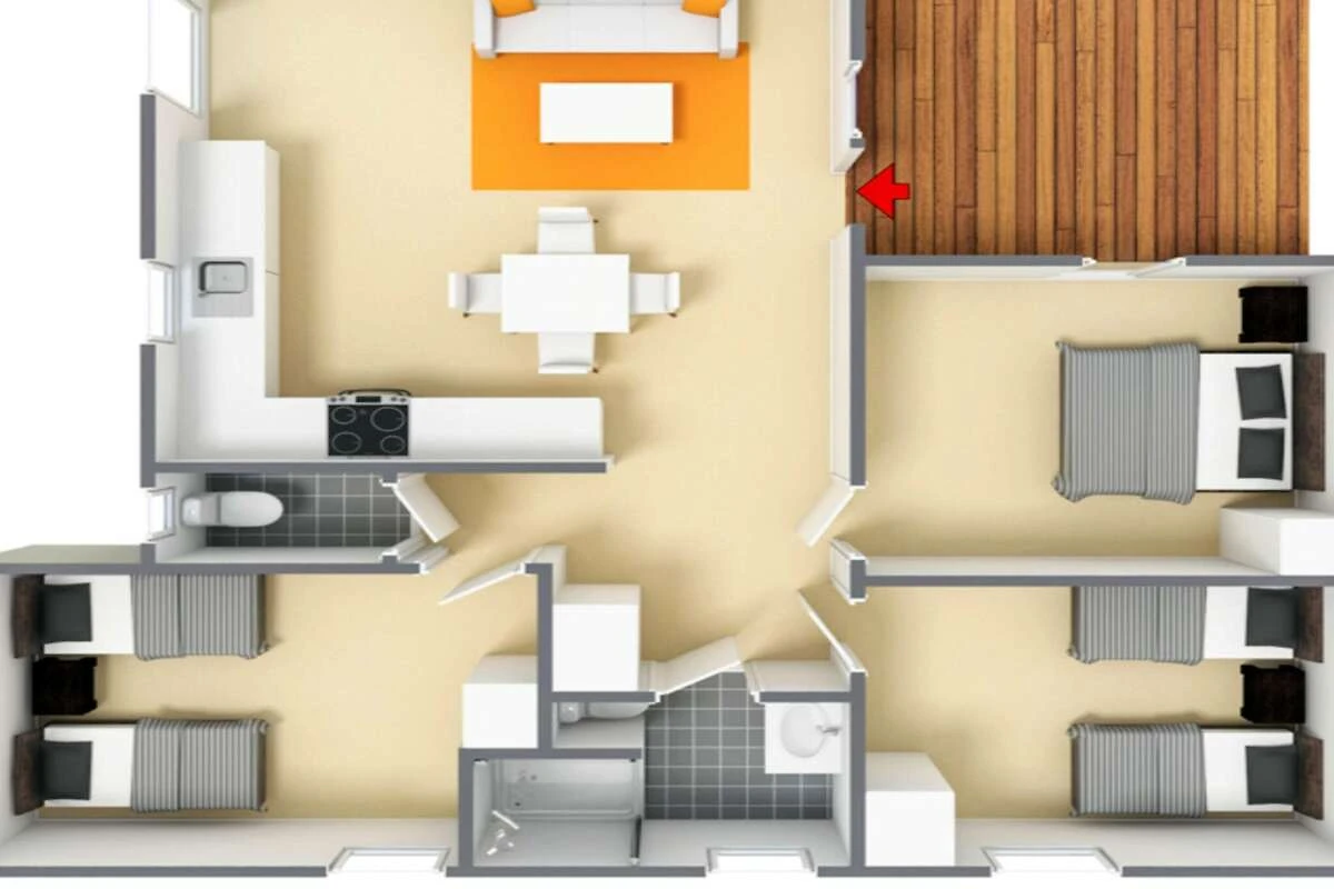Küche(Kaffeemaschine, Mikrowelle, Kühl-/Gefrierkombination), Wohn-/Schlafzimmer(TV), Schlafzimmer(Doppelbett), Schlafzimmer(2x Einzelbett), Schlafzimmer(2x Einzelbett), Badezimmer(Waschbecken, Dusche, Toilette), Badezimmer(Toilette), Sauna(Gemeinschaftliche Nutzung mit anderen Gästen, im Innenbereich, erwärmt), Heizung(Zentral), Terrasse, Terrasse, Gartenmöbel, Grill, Parkplatz, Pool(Gemeinschaftliche Nutzung mit anderen Gästen, im Innenbereich), Pool(Gemeinschaftliche Nutzung mit anderen Gästen, im Garten), Spielgeräte, Fußballtor