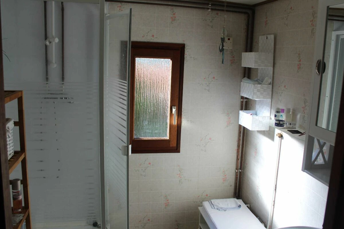 Es verfügt über 3 Zimmer (Schlafzimmer mit Doppelbett, Kinderzimmer mit Etagenbett), ein Bad mit Dusche und eine Küchenzeile mit Cerankochfeld, Backofen sowie Kühlschrank, Kaffeemaschine, Wasserkocher, Geschirr und Toaster.