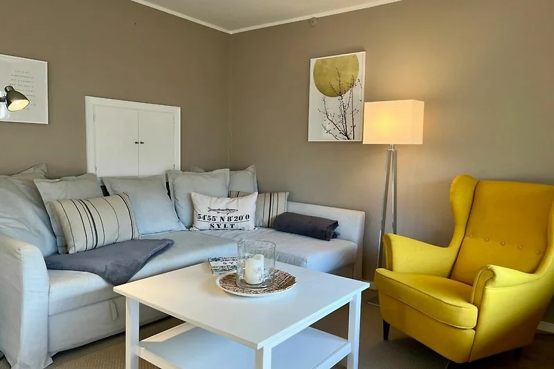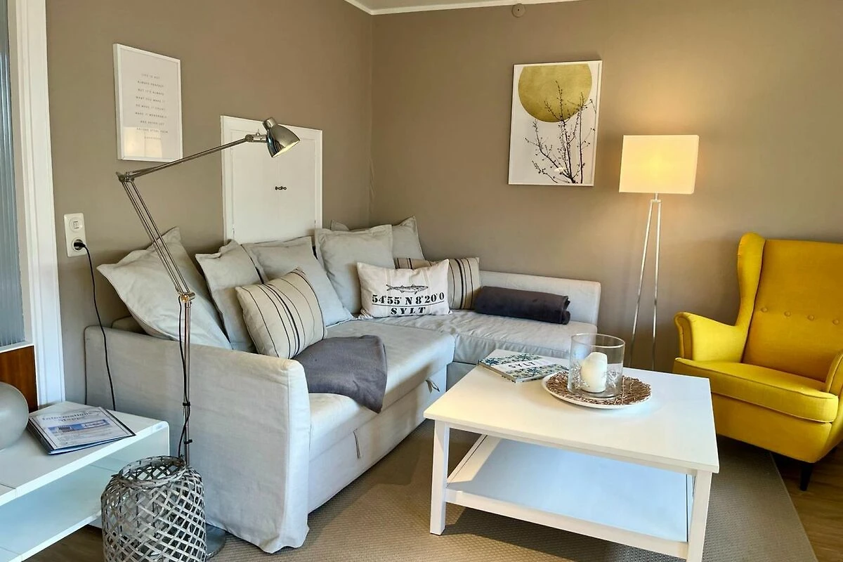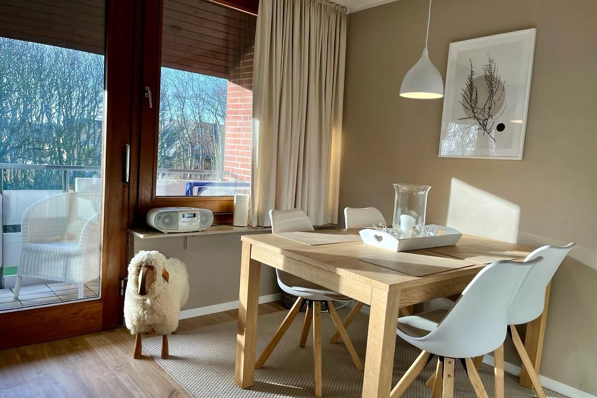 Die Wohnung eignet sich mit seinen knapp 50 qm für max. 3 Personen. Sie ist modern und gemütlich eingerichtet und bietet alles was man für einen angenehmen Urlaubsaufenthalt benötigt. Im Schlafzimmer befindet sich ein Doppelbett von 160 x 200 cm. Im Wohnraum ist ein ausziehbares Schlafsofa vorhanden. Eine separate Kochküche ist mit einem Geschirrspüler, einer Mikrowelle, Kaffeemaschine und Herd ausgestattet.