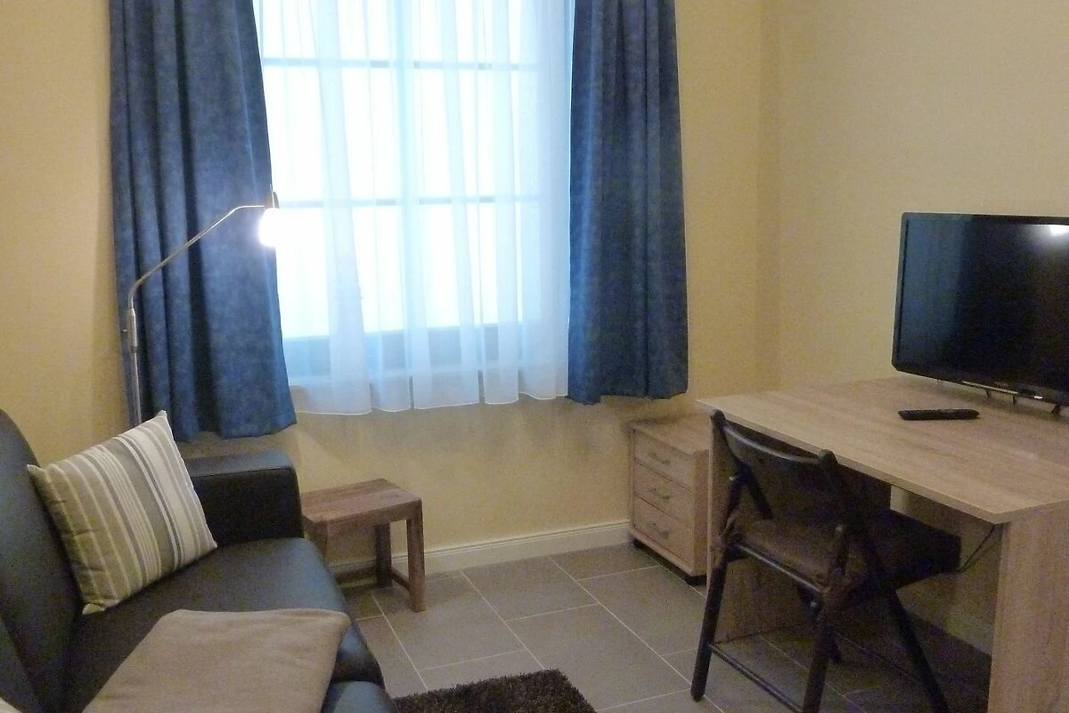 Die helle Ferienwohnung verfügt über ein schönes Schlafzimmer mit erhöhtem Doppelbett. Und ein weiteres kleines Schlafzimmer mit ausziehbarem Sofa auf dem zwei Personen schlafen können und Schreibtisch. WLAN-Anschluss sowie ein zweiter Fernseher sind vorhanden.