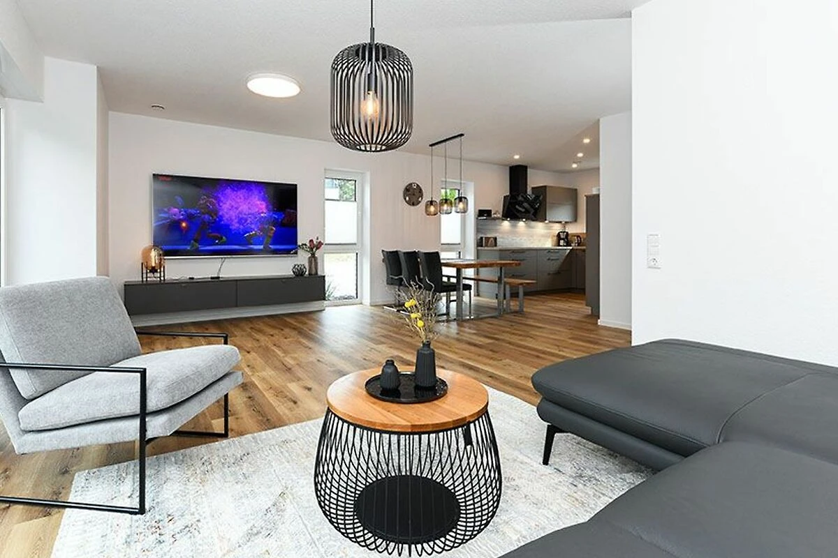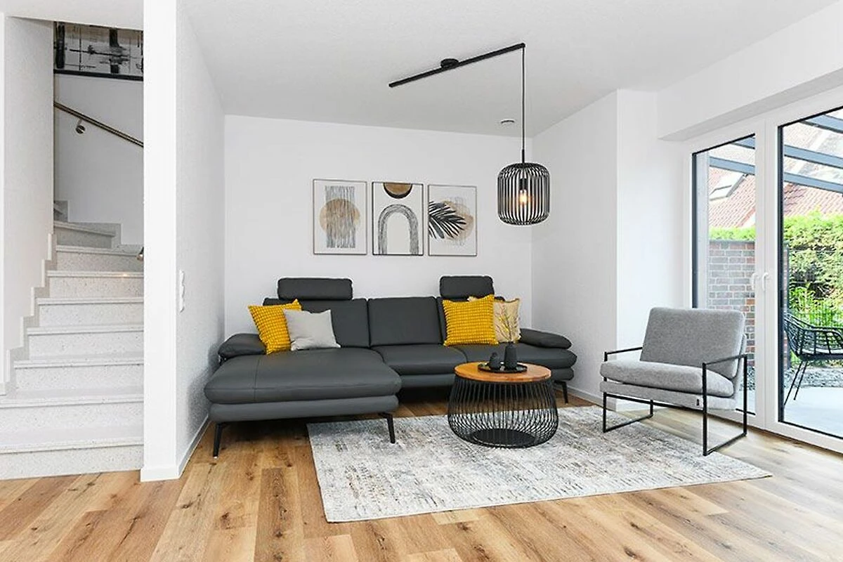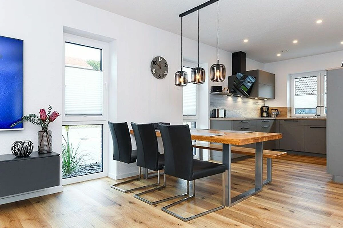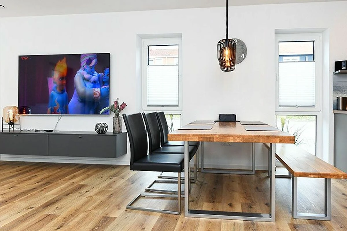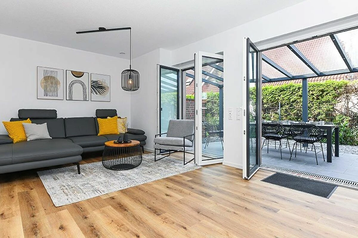 Es handelt sich bei diesem Ferienhaus um ein geräumiges ungefähr 100 Quadratmeter grosses Reihenhaus, dass für einen schönen Nordseeurlaub für bis zu 6 Personen bestens vorbereitet ist. Das Ferienhaus ist modern-gemütlich, hell und freundlich gestaltet und eingerichtet sowie äusserst hochwertig mit viel Liebe zum Detail ausgestattet. Es gibt zum Beispiel eine Terrasse und eine top ausgestattete moderne Küche mit Geschirrspülmaschine.