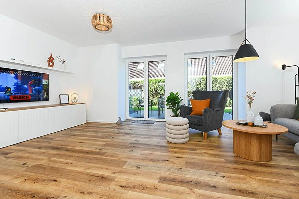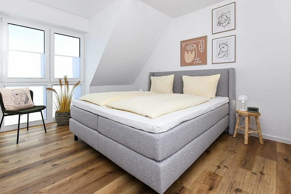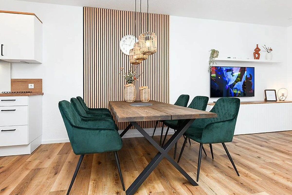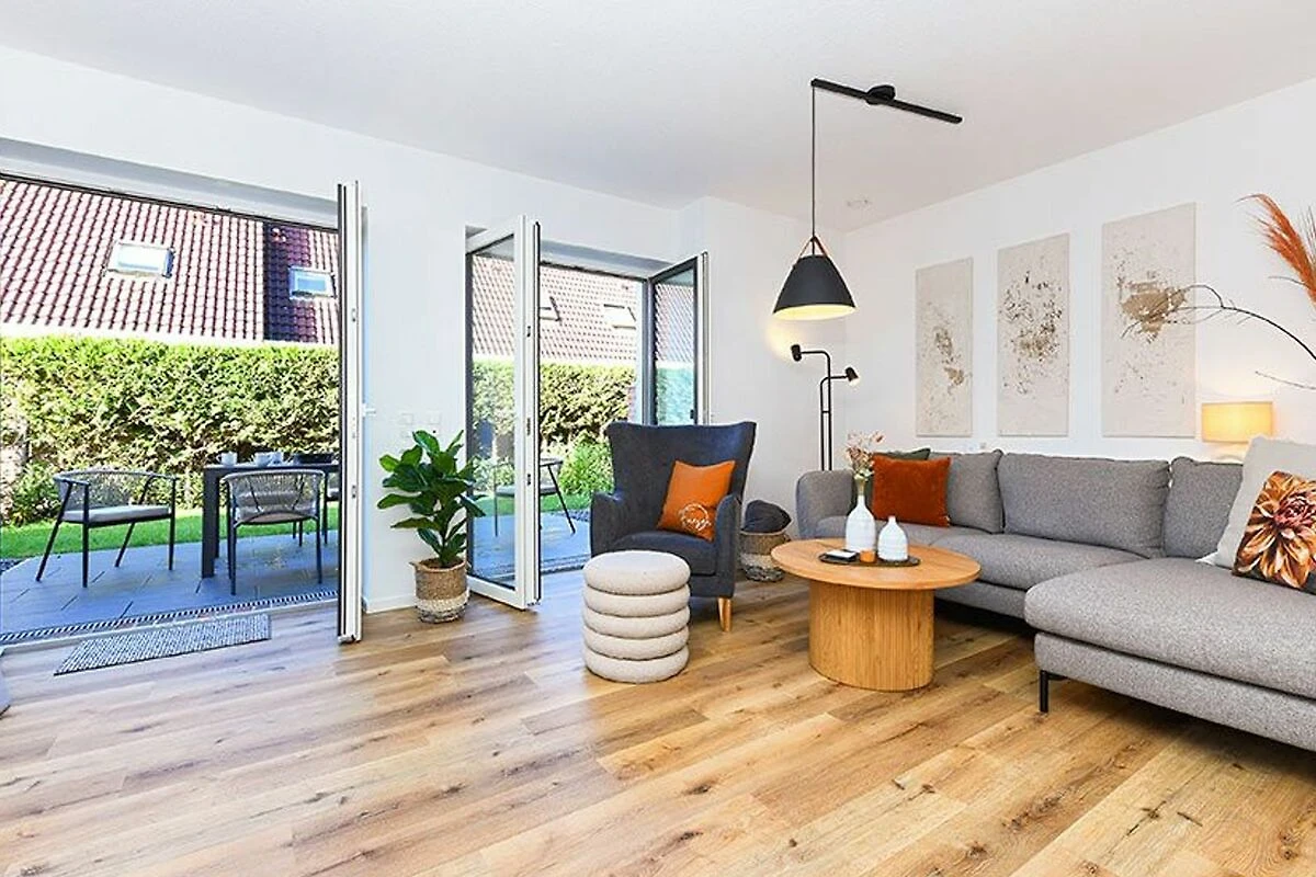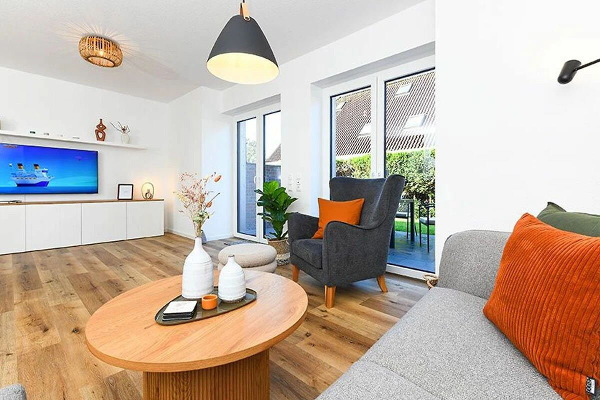 Es handelt sich bei diesem Ferienhaus um ein geräumiges ungefähr 100 Quadratmeter grosses Reihenhaus, dass für einen schönen Nordseeurlaub für bis zu 6 Personen bestens vorbereitet ist. Das Ferienhaus ist modern-gemütlich, hell und freundlich gestaltet und eingerichtet sowie äusserst hochwertig mit viel Liebe zum Detail ausgestattet. Es gibt zum Beispiel eine Terrasse und eine top ausgestattete moderne Küche mit Geschirrspülmaschine.