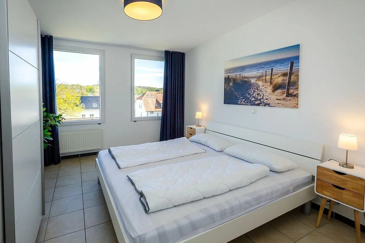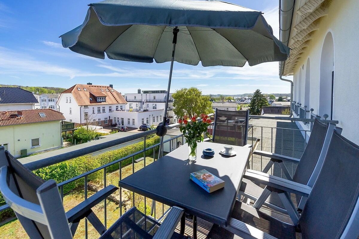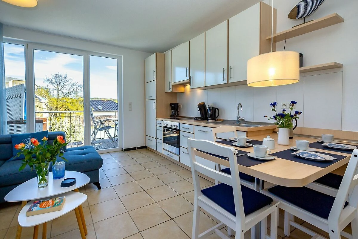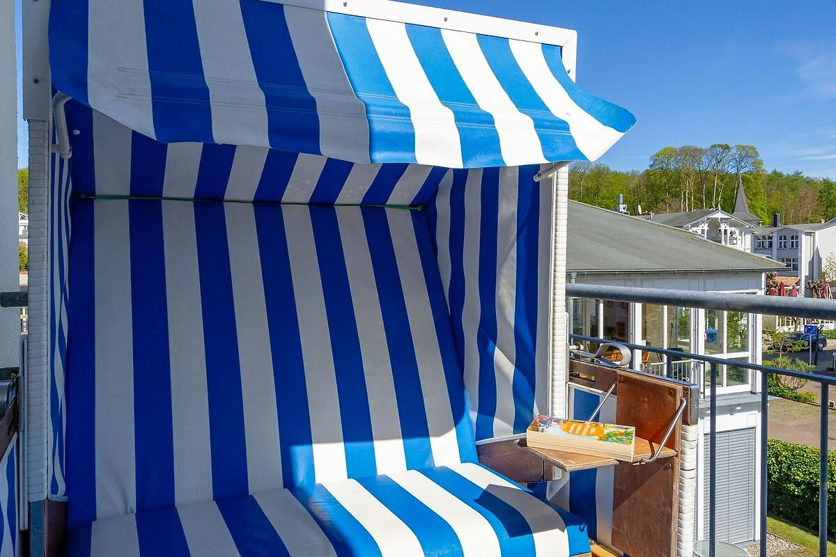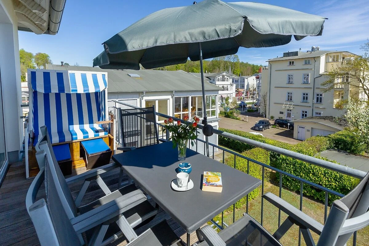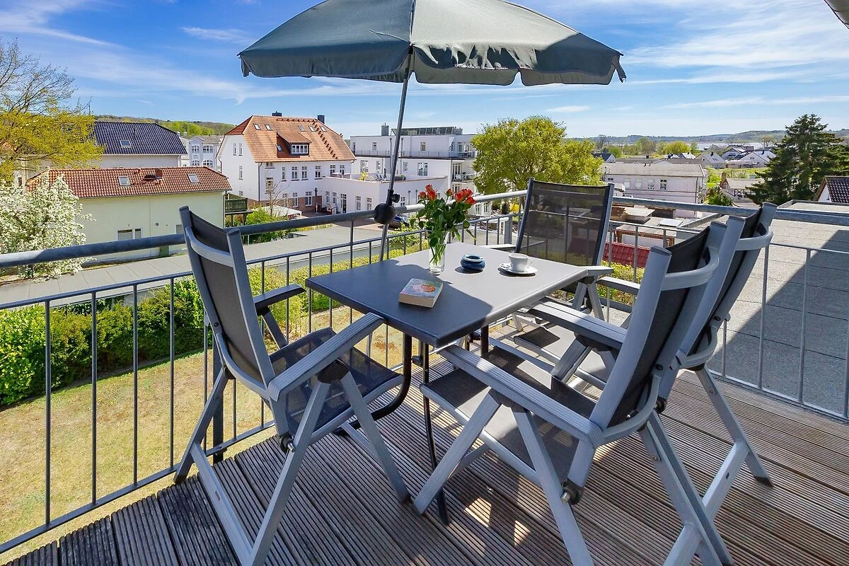 Mit herrlichem Blick über die Dächer von Sellin und bis ins idyllische Hügelland rund um den Selliner See erwartet Sie diese rund 61 qm grosse Maisonettewohnung im Ober- und Dachgeschoss von Haus 2. Wunderbar ruhig und zentral gelegen, sind es von hier aus über die Wilhelmstrasse mit ihren Geschäften und Restaurants nur wenige Gehminuten bis zum Hauptstrand mit der berühmten Seebrücke.