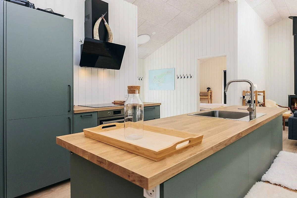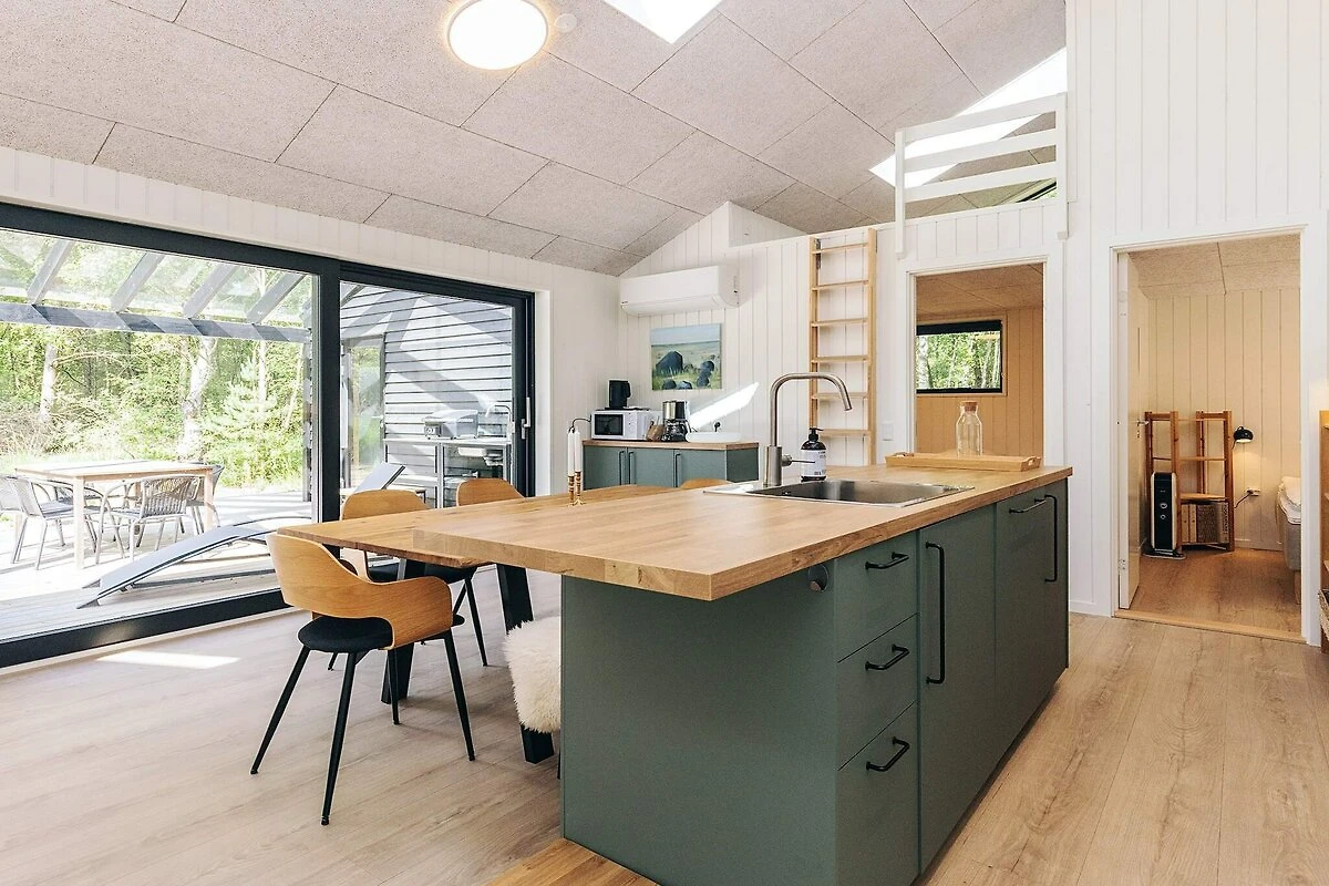 Im Osten der wunderschönen Ferieninsel Læsø finden Sie dieses gemütliche, neu gebaute Ferienhaus, abgeschieden von den Nachbarn auf einem ungestörten Naturgrundstück. Sie wohnen hier in der Nähe des Waldes und des Golfplatzes. Die Hafenstadt Østerby Havn mit Geschäften, Einkaufsmöglichkeiten und mehreren Restaurants ist nur wenige Kilometer entfernt. Das moderne Ferienhaus ist praktisch ausgestattet und geschmackvoll und durchdacht eingerichtet. Es besteht aus einem Wohnzimmer mit großen Fenstern, die für viel Licht sorgen. Der Wohnbereich verfügt über einen Holzofen, eine offene Küche mit angrenzendem Esszimmer, drei geräumige Schlafzimmer und ein Badezimmer mit komfortabler Fußbodenheizung. Es gibt außerdem einen gemütlichen Schlafboden mit Matratzen, auf den sich die älteren Kinder der Familie zurückziehen und Ruhe finden können. Der Außenbereich des Hauses bietet zwei Terrassen, eine davon überdacht. Es gibt außerdem eine praktische Außendusche, eine Außenküche mit Tisch und Spüle – ideal zum Reinigen von Pilzen oder selbst gefangenem Fisch – sowie eine Ladestation für ein Elektroauto. Die Bepflanzung des Grundstücks macht es zum idealen Ort, um einen Sommerabend auf der Terrasse zu genießen, ohne von Nachbarn oder Passanten gesehen zu werden. Wasserverbrauch inklusive. Bitte beachten Sie, dass Jugendgruppen und Haustiere im Haus nicht gestattet sind.