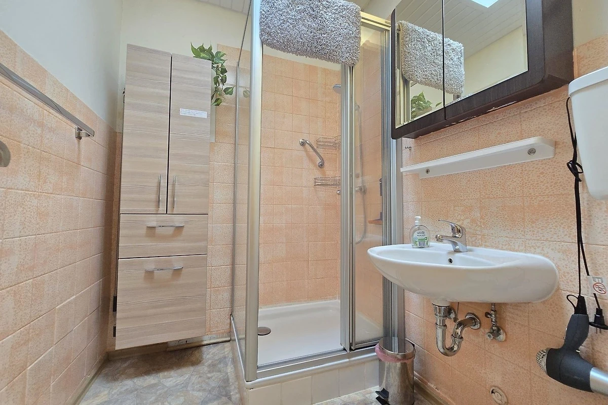 Die Ferienwohnung bietet ein modernes und komfortables Ambiente. Mit zwei Schlafzimmern, einem Doppelbett und zwei Einzelbetten ist sie ideal für Familien oder Gruppen. Das Badezimmer ist mit einer Duschbadewanne ausgestattet und zusätzlich stehen Haartrockner und ein Starterset mit Seife, Duschgel und Toilettenpapier zur Verfügung. Die Küche ist voll ausgestattet mit einem Elektro-/Gasherd, Backofen, Mikrowelle, Kühlschrank, Geschirrspüler, Kaffeemaschine, Toaster und Wasserkocher, ideal für die Zubereitung von Mahlzeiten. Ein Esstisch im Wohnbereich lädt zum gemeinsamen Verweilen ein. Für Unterhaltung sorgt ein TV, und Internet mit WLAN ist ebenfalls verfügbar. Allergikerfreundliche Materialien und Reinigungsmittel sind im Starterset enthalten. Ausserdem steht ein Parkplatz zur Verfügung. Die Ferienwohnung ist mit einer Heizung ausgestattet und bietet angenehmen Komfort in jeder Jahreszeit.