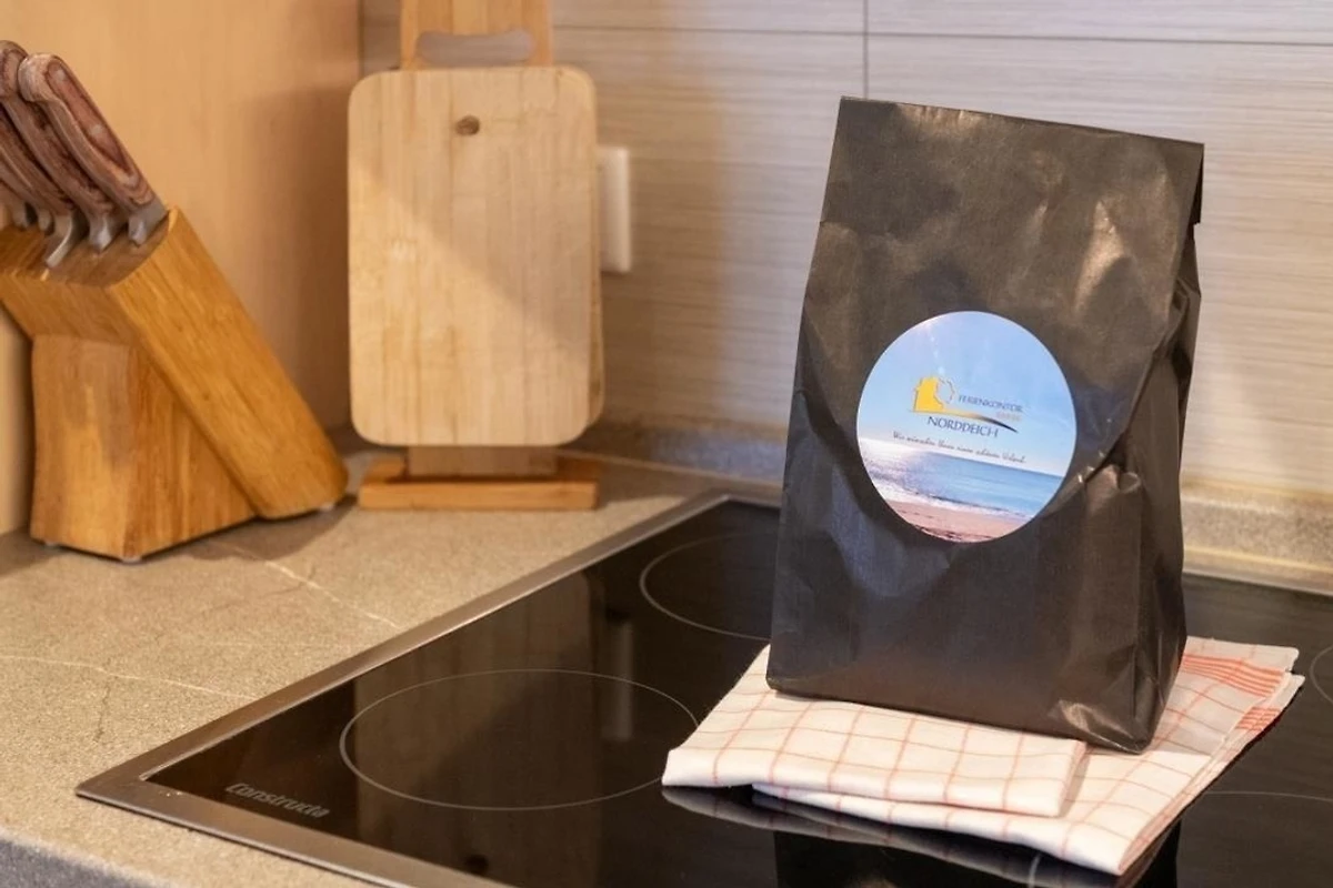 Für Unterhaltung sorgen Internet und WLAN, ein TV, ein Radio, ein DVD-Spieler sowie Bücher und Spiele. Die Küche ist offen zum Wohnzimmer und ausgestattet mit einem Ceranherd, einem Gefrierfach oder -schrank, einer Espressomaschine, einer Mikrowelle, einem Kühlschrank und einer Spülmaschine. Weitere Küchengeräte umfassen eine Kaffeemaschine, einen Wasserkocher, einen Mixer, einen Toaster, einen Eierkocher und einen Elektrogrill. Geschirr und Besteck, Geschirrhandtücher und Gewürze sind ebenfalls vorhanden, ebenso wie ein Abfalleimer.