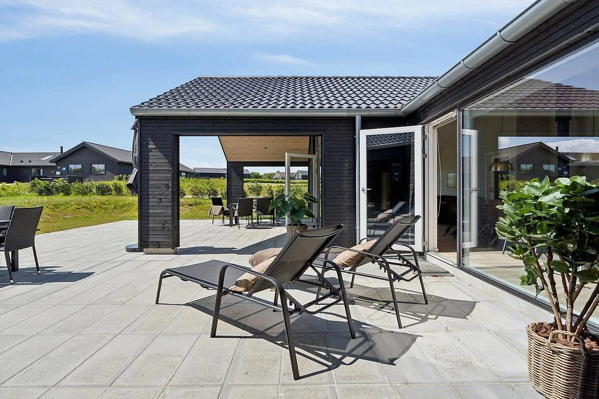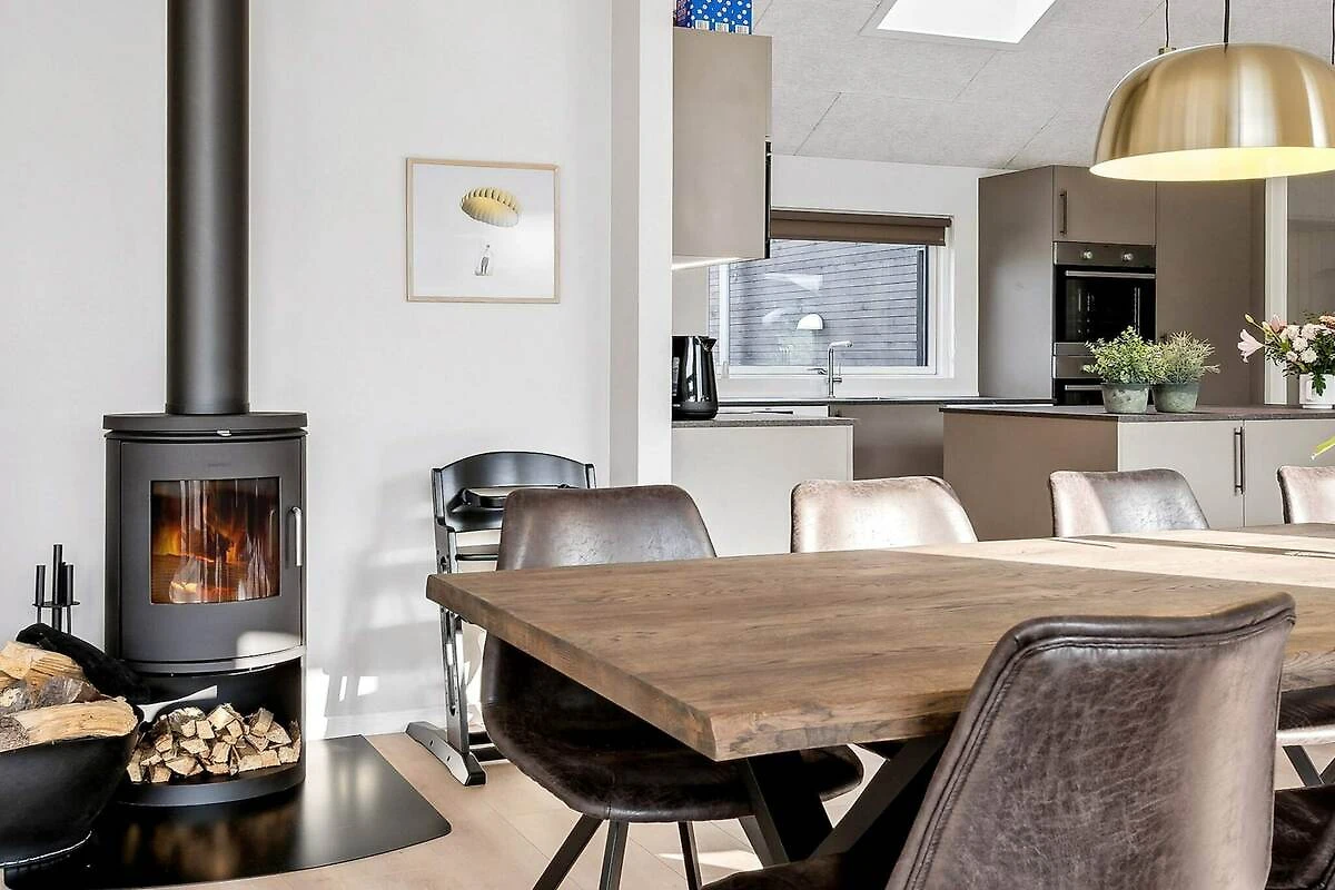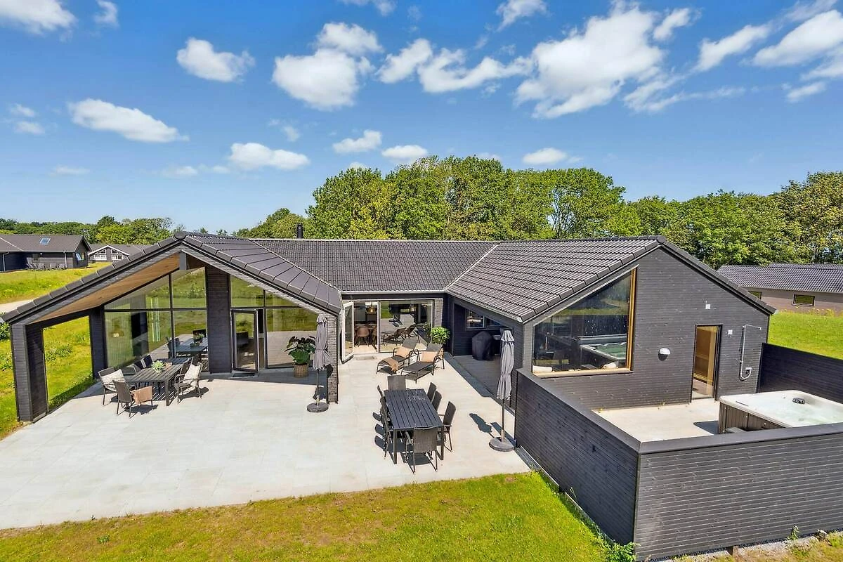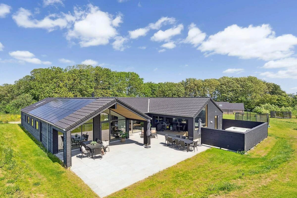 Im idyllischen Mommark finden Sie dieses schöne Luxus-Ferienhaus für 18 Personen, in der Nähe eines schönen Sandstrandes, eines kleinen Hafens mit Fischerbooten und herrlicher Natur mit Möglichkeiten zum Wandern und Radfahren. Das Ferienhaus verfügt über sieben Schlafzimmer, drei Badezimmer und einen gemütlichen Dachboden, den besonders Kinder lieben werden. Besonderen Wert wurde auf die Gestaltung der großen Wohnküche gelegt. Sie bildet den Mittelpunkt des Hauses und verfügt über eine voll ausgestattete XL-Küche mit zwei Backöfen und zwei Geschirrspülern, einen langen, schönen Mahagoni-Esstisch mit Platz für alle und eine gemütliche Sofaecke mit Holzofen. Hier gibt es reichlich Gelegenheit für gemütliches Beisammensein und gutes Essen. Der Aktivitätsraum, der mit der Wohnküche verbunden ist, bietet jede Menge Spaß. Es gibt Billard, Tischtennis, Tischfußball und Darts sowie eine Bar, an der Sie Erfrischungen genießen können, während Sie an den vielen Spielen teilnehmen. Entspannen Sie sich außerdem auf den Loungemöbeln im Aktivitätsraum, zum Beispiel bei einem Film – für die perfekte Balance zwischen Aktivität und Entspannung. Das Haus verfügt über einen eigenen Poolbereich, in dem Sie stundenlang schwimmen und spielen können und der Platz für große und kleine Kinder bietet. Draußen finden Sie einen Wellnessbereich mit kleiner überdachter Holzterrasse, Sauna, Außen-Whirlpool und Außendusche, wo Sie unter freiem Himmel entspannen können. Für die jüngsten Gäste gibt es im Garten jede Menge Unterhaltung mit einem Trampolin, das viele Stunden Spaß garantiert. Währenddessen können die Erwachsenen ein Grillabendessen genießen oder auf der teilweise überdachten Terrasse mit bequemen Gartenmöbeln entspannen. Für Angler gibt es einen# eigene Filetierbank mit Arbeitsfläche, Spüle und Wasserhahn. Das Gelände rund um das Haus bietet außerdem einen großen Mehrzweck-Sportplatz und einen Spielplatz mit einem spannenden Piratenschiff. Hier gibt es Tische und Bänke, damit sich die Erwachsenen vergnügen können, während die Kinder spielen und die Gegend erkunden. Das Haus ist außerdem mit einer Ladestation für Elektroautos ausgestattet, sodass Sie Ihr Auto direkt am Haus aufladen können. Dieses Haus vereint Komfort, Spaß und Entspannung und ist die perfekte Wahl für einen erlebnisreichen und unterhaltsamen Urlaub an der ruhigen Küste von Mommark. Es ist der ideale Ort für einen erholsamen Urlaub am Wasser.