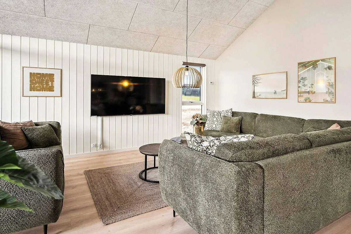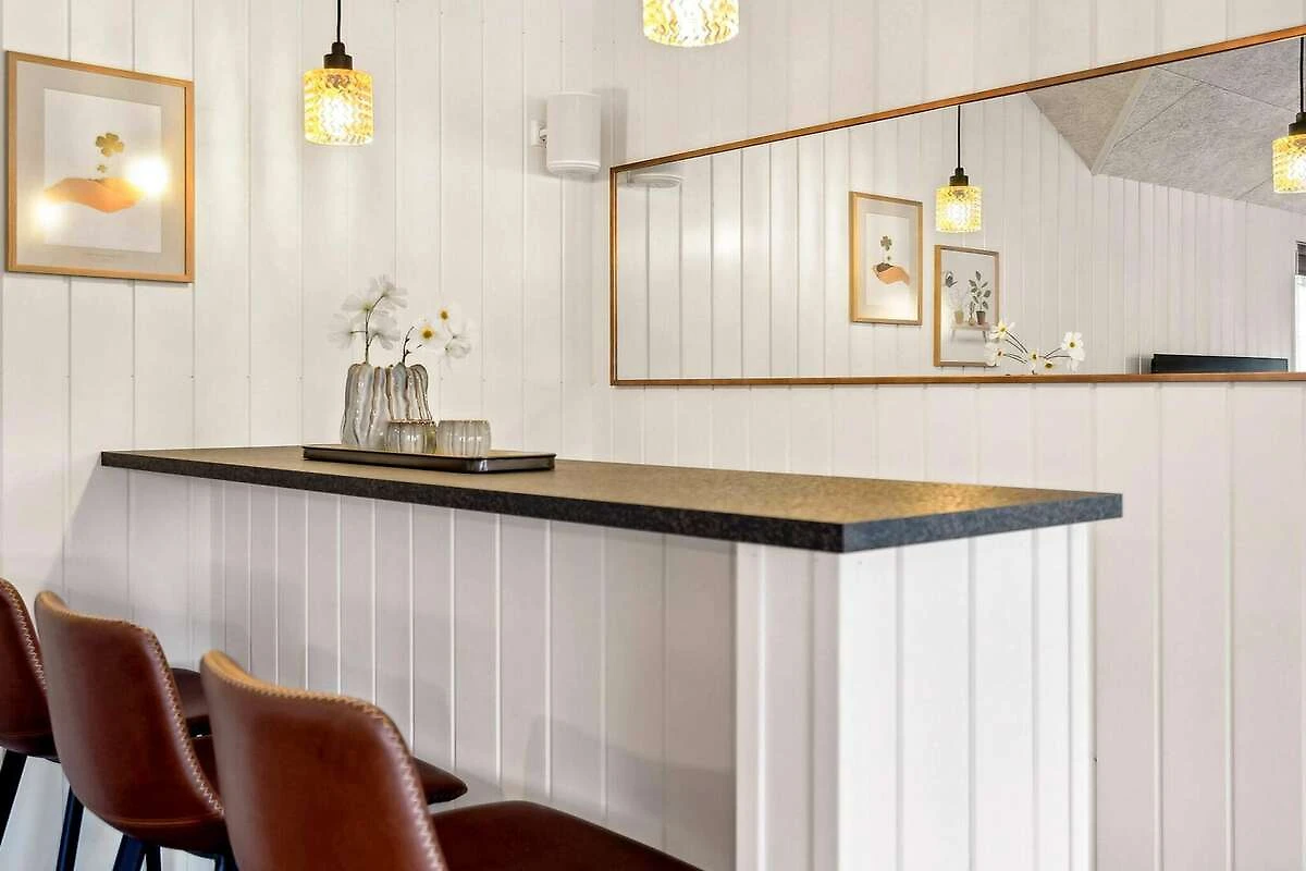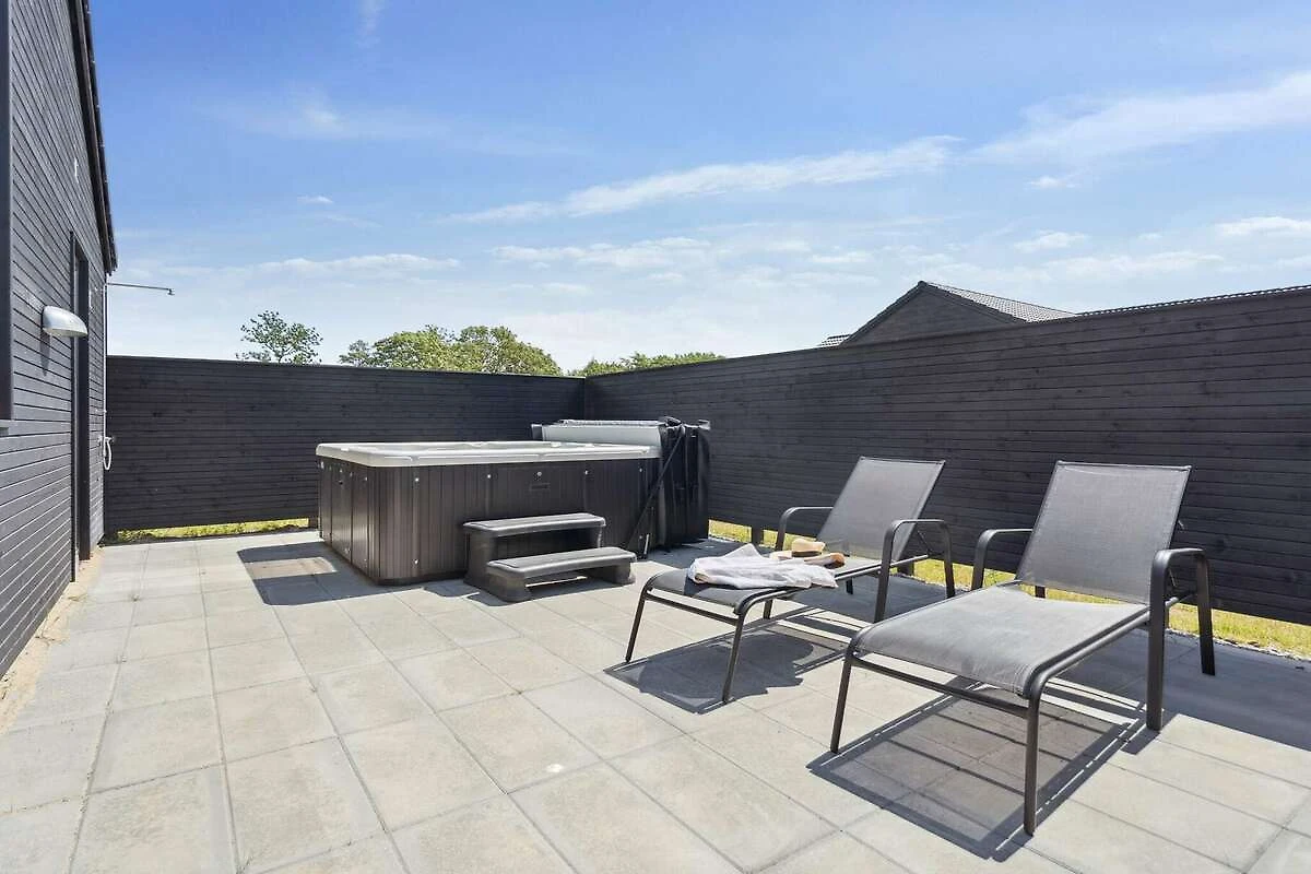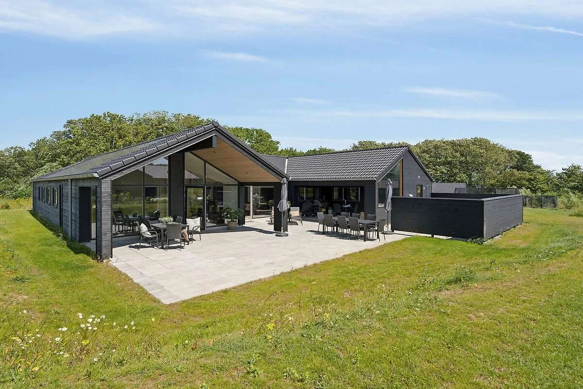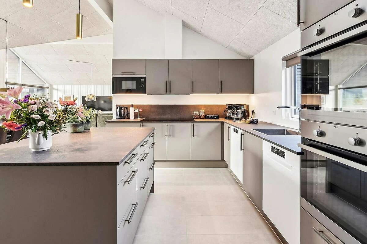 Im idyllischen Mommark finden Sie dieses schöne Luxus-Ferienhaus für 18 Personen, in der Nähe eines schönen Sandstrandes, eines kleinen Hafens mit Fischerbooten und herrlicher Natur mit Möglichkeiten zum Wandern und Radfahren. Das Ferienhaus verfügt über sieben Schlafzimmer, drei Badezimmer und einen gemütlichen Dachboden, den besonders Kinder lieben werden. Besonderen Wert wurde auf die Gestaltung der großen Wohnküche gelegt. Sie bildet den Mittelpunkt des Hauses und verfügt über eine voll ausgestattete XL-Küche mit zwei Backöfen und zwei Geschirrspülern, einen langen, schönen Mahagoni-Esstisch mit Platz für alle und eine gemütliche Sofaecke mit Holzofen. Hier gibt es reichlich Gelegenheit für gemütliches Beisammensein und gutes Essen. Der Aktivitätsraum, der mit der Wohnküche verbunden ist, bietet jede Menge Spaß. Es gibt Billard, Tischtennis, Tischfußball und Darts sowie eine Bar, an der Sie Erfrischungen genießen können, während Sie an den vielen Spielen teilnehmen. Entspannen Sie sich außerdem auf den Loungemöbeln im Aktivitätsraum, zum Beispiel bei einem Film – für die perfekte Balance zwischen Aktivität und Entspannung. Das Haus verfügt über einen eigenen Poolbereich, in dem Sie stundenlang schwimmen und spielen können und der Platz für große und kleine Kinder bietet. Draußen finden Sie einen Wellnessbereich mit kleiner überdachter Holzterrasse, Sauna, Außen-Whirlpool und Außendusche, wo Sie unter freiem Himmel entspannen können. Für die jüngsten Gäste gibt es im Garten jede Menge Unterhaltung mit einem Trampolin, das viele Stunden Spaß garantiert. Währenddessen können die Erwachsenen ein Grillabendessen genießen oder auf der teilweise überdachten Terrasse mit bequemen Gartenmöbeln entspannen. Für Angler gibt es einen# eigene Filetierbank mit Arbeitsfläche, Spüle und Wasserhahn. Das Gelände rund um das Haus bietet außerdem einen großen Mehrzweck-Sportplatz und einen Spielplatz mit einem spannenden Piratenschiff. Hier gibt es Tische und Bänke, damit sich die Erwachsenen vergnügen können, während die Kinder spielen und die Gegend erkunden. Das Haus ist außerdem mit einer Ladestation für Elektroautos ausgestattet, sodass Sie Ihr Auto direkt am Haus aufladen können. Dieses Haus vereint Komfort, Spaß und Entspannung und ist die perfekte Wahl für einen erlebnisreichen und unterhaltsamen Urlaub an der ruhigen Küste von Mommark. Es ist der ideale Ort für einen erholsamen Urlaub am Wasser.