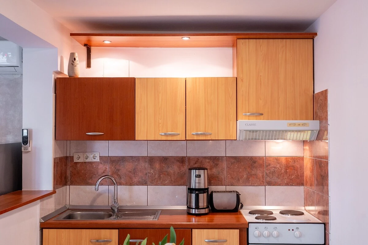Sie verfügten über eine voll ausgestattete Küchenzeile mit Mikrowelle, Wasserkocher und Kaffeemaschine.