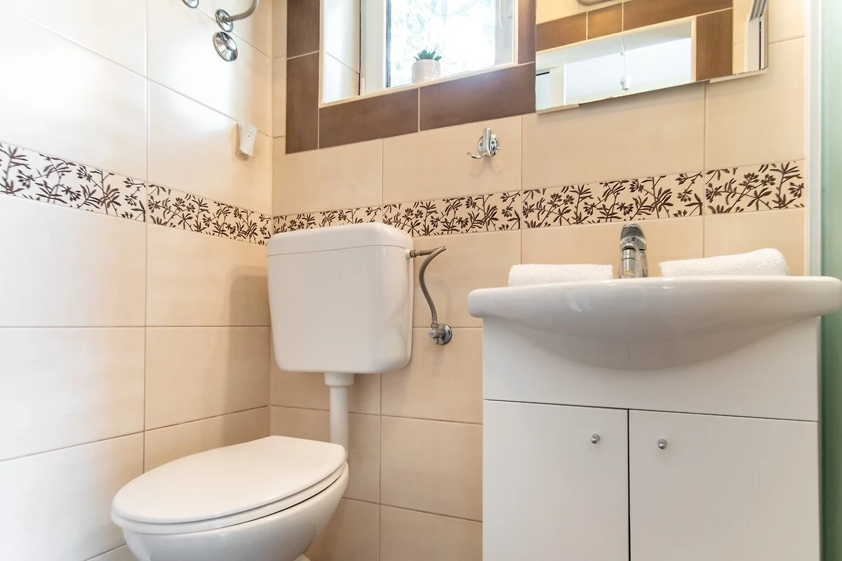 - Essküche : Mikrowelle, Kühlschrank mit Tiefkühlteil, Toster, Kaffeemaschine, Wasserkocher