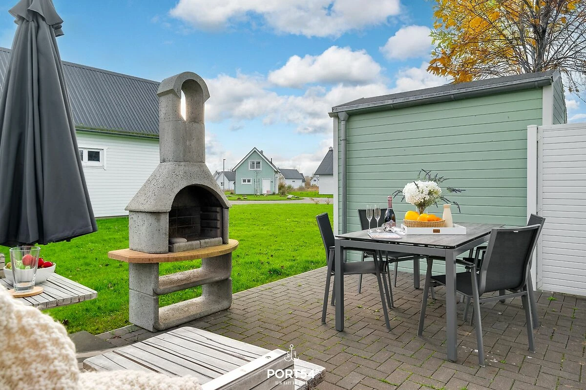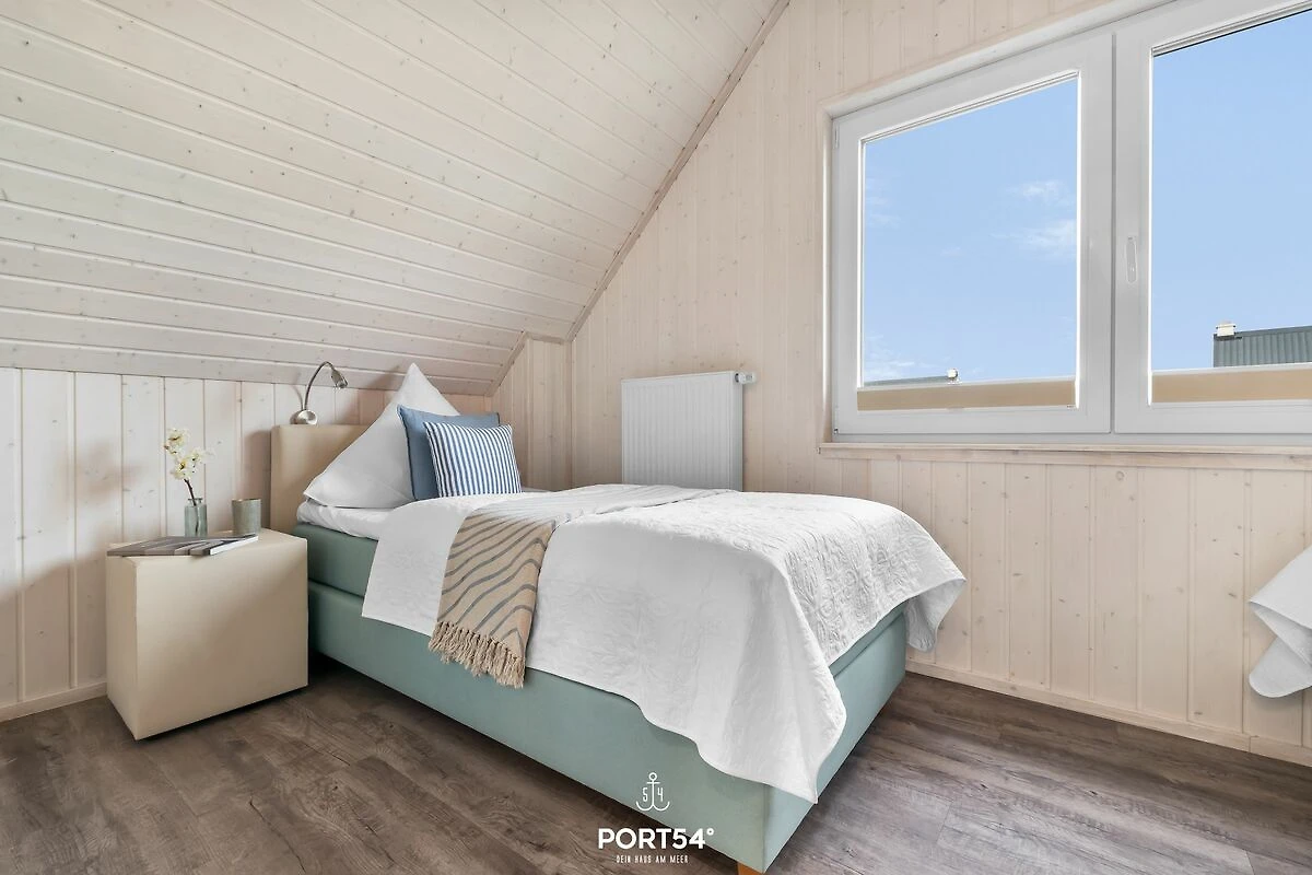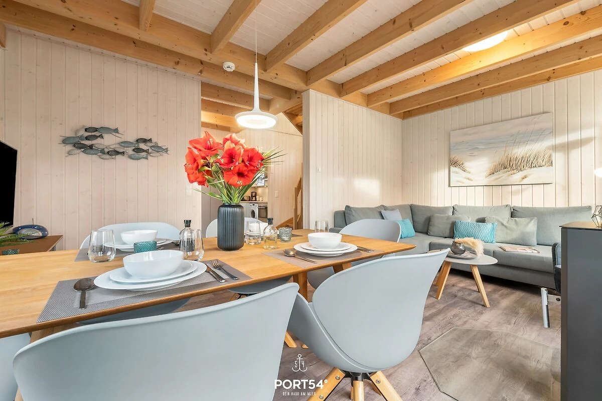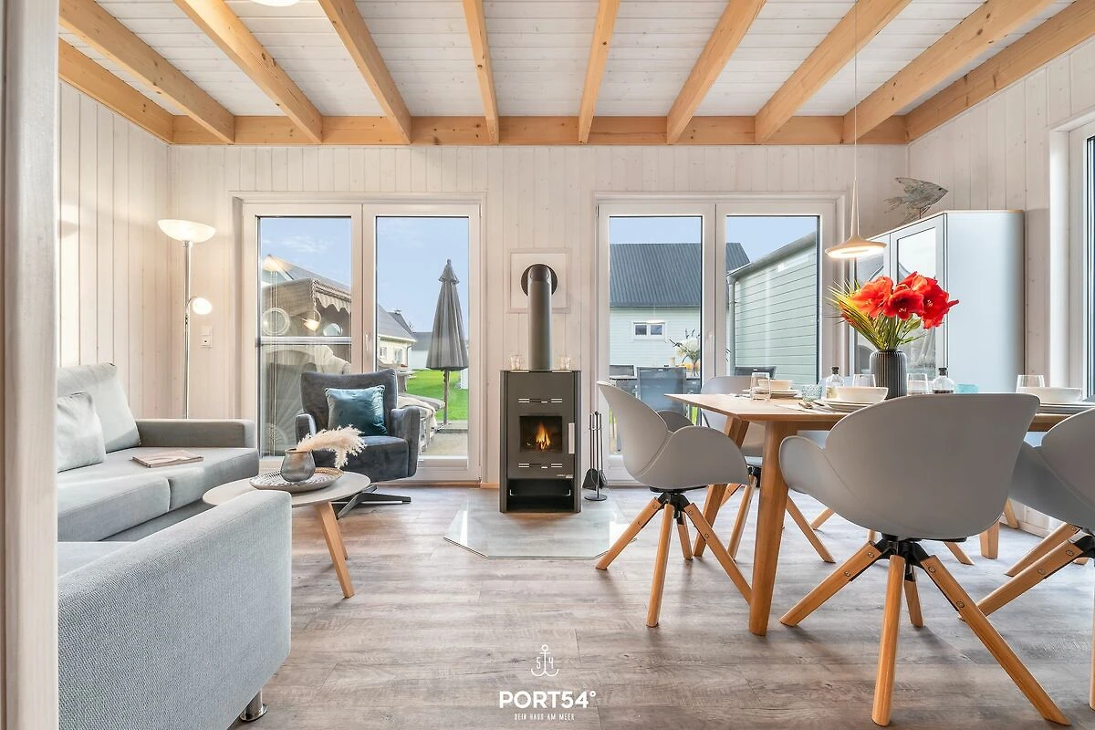 Herzlich Willkommen in Ihrem Ferienhaus "Huus Luv" in Olpenitz. Ihr freistehendes, 80 qm großes Feriendomizil verfügt über einen großzügigen Wohn- und Essbereich, zwei Schlafzimmer, zwei Bäder und eine Küche. Durch die Liebe zum Detail und der hochwertigen Ausstattung werden Sie sich gleich wie zuhause fühlen. Die großen Fenster sorgen für ein lichtdurchflutetes, großzügiges Wohngefühl. Im Wohnbereich können Sie es sich auf dem Sofa gemütlich machen, ein gutes Buch lesen oder auf dem Flach-TV Ihre Lieblingsserie schauen. Das Sofa lässt sich mit wenigen Handgriffen zu einem Schlafsofa umfunktionieren, so dass ein weiterer Schlafplatz für ein Kind zur Verfügung steht. An kühlen Abenden verbreitet der Kamin eine wohlige Wärme. Die Küche bietet alles, um sich und Ihre Familie kulinarisch zu verwöhnen. Ein Bad rundet das Erdgeschoss ab. Das Badezimmer verfügt über ein Fenster mit Sichtschutz, eine Dusche, eine Handtuchheizung und als besonderes Highlight, eine Infrarotkabine. Hier können Sie sich nach langen Strandspaziergängen aufwärmen und entspannen. Für unsere kleinen Gäste stehen ein Babyreisebett, ein Kinderhochstuhl, ein Kinderhocker und ein Töpfchen bereit. Im Obergeschoss befinden sich zwei Schlafzimmer. Eines der beiden Zimmer bietet ein gemütliches Boxspringbett (180cmx200cm), einen Schrank und einen Smart-TV, das zweite Schlafzimmer ist mit zwei Boxspringbetten (je90cmx200cm), sowie ebenfalls mit einem Schrank ausgestattet. Beide Zimmer verfügen über Insektenschutz und Verdunkelungsmöglichkeiten, so dass einem erholsamen Schlaf nichts mehr im Wege steht. Das Bad im Obergeschoss bietet ein Dachfenster mit Sichtschutz, eine Badewanne, eine Handtuchheizung, einen Föhn und ein weiteres WC. Ihre Fellnasen sind nicht nur geduldet, sondern herzlich Willkommen. Genießen Sie die nach Süden ausgerichtete, möblierte Terrasse um zu entspannen, Grillabende zu veranstalten oder einfach um im Strandkorb die Seele baumeln zu lassen. Für Ihre mitgebrachten oder beim Tourguide gemieteten Räder steht Ihnen ein abschließbarer Schuppen zur Verfügung. Nicht nur für Ihre Zweiräder ist gesorgt: vor Ihrem Ferienhaus stehen für Ihren PKW 2 Parkplätze zur Verfügung. Das Haus wird für 4 Erwachsene und ein Kind angeboten.