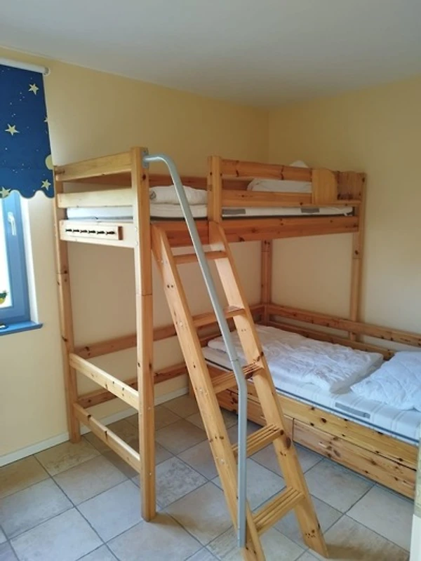 Die Wohnung verfügt über ein Schlafzimmer mit einem grossen Doppelbett und ein Kinderzimmer mit einem Doppelstockbett. Das Kinderzimmer ist zusätzlich mit einem 2. TV ausgestattet.