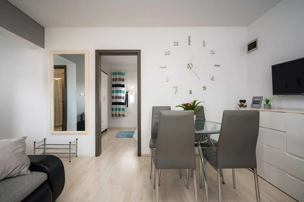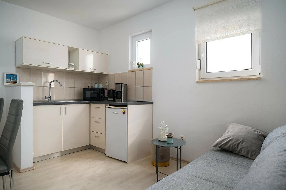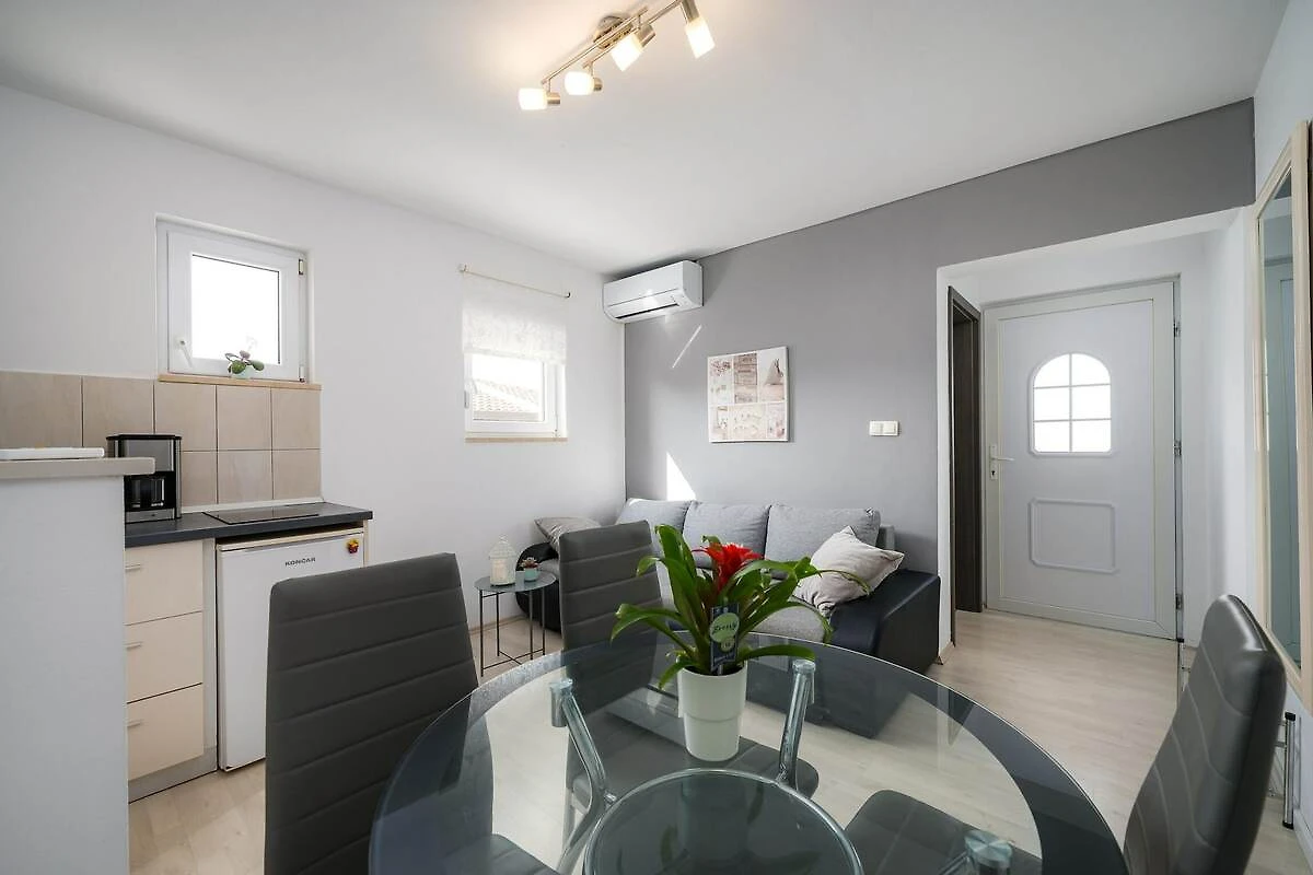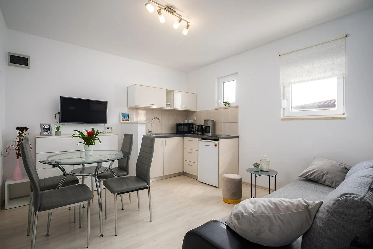 Charmante Apartment Rose I ist ein perfekter Rückzugsort für eine kleine Gruppe oder ein Paar, das einen gemütlichen Kurzurlaub verbringen möchte. Es besteht aus einem Wohn- und Essküchenbereich, einem separaten Schlafzimmer mit Doppelbett und einem Badezimmer mit Dusche. Der Pool und der Garten werden mit dem Apartment Rose II geteilt. Die geschmackvolle Einrichtung und der Blick auf den Garten und den Pool schaffen eine ruhige Atmosphäre. Gartenmöbel, eine Terrasse und ein Grill eignen sich hervorragend zum Entspannen und Essen im Freien. Die bereitgestellten Annehmlichkeiten wie Internetzugang, Klimaanlage und der Gemeinschaftspool tragen zu einem komfortablen Aufenthalt bei. Zusätzlich gibt es überdachte Parkplätze vor dem Haus. Apartment Rose ist eine schöne Unterkunft, die sowohl Entspannung als auch einfachen Zugang zu verschiedenen Attraktionen in der Umgebung bietet. Die Kombination aus einer ruhigen Nachbarschaft und der Nähe zum Meer trägt zu seinem Charme bei.