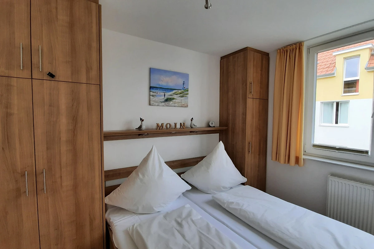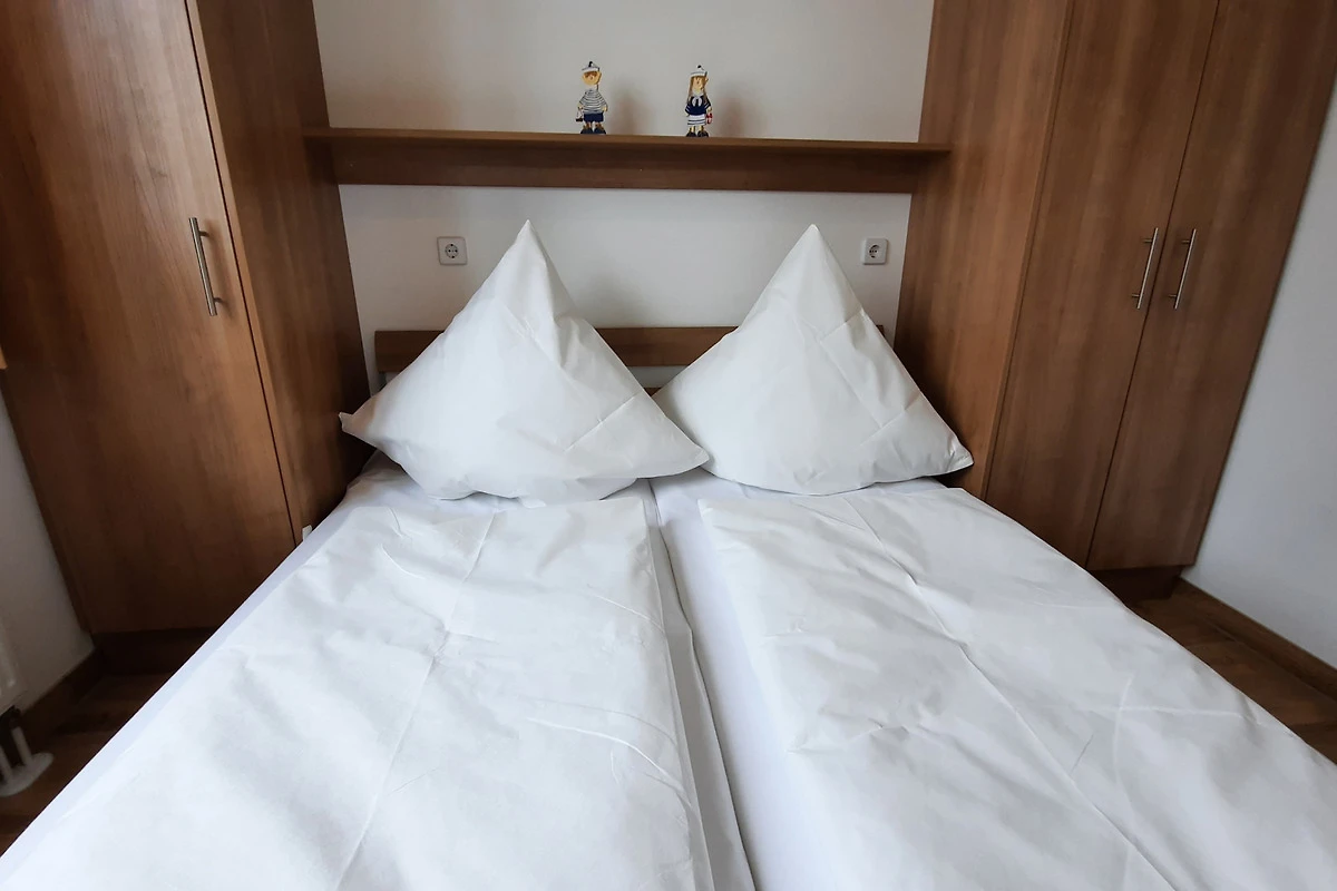 Die beiden Schlafzimmer sind jeweils mit gemütlichen Doppelbetten und ausreichend Stauraum ausgestattet.