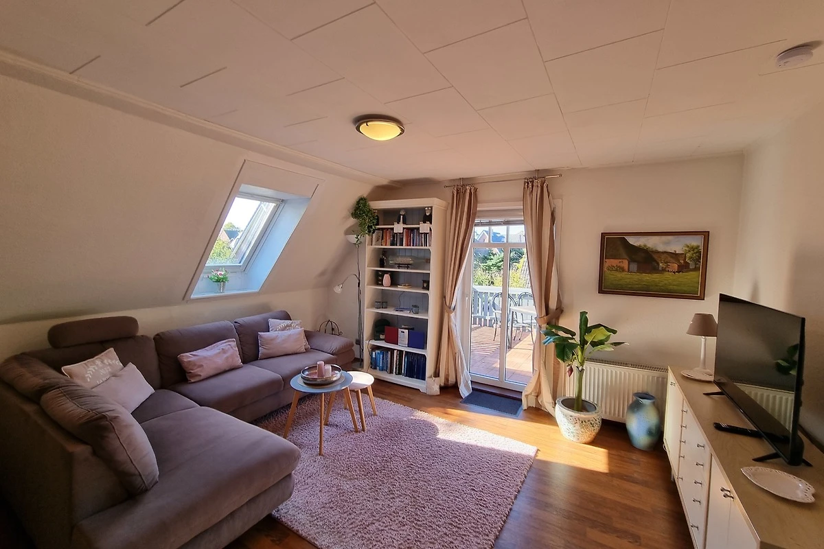 Ein Highlight ist die 40 m² grosse Dachterrasse mit Blick ins Grüne. Hier können Sie die Stunden an der gesunden Nordseeluft verbringen und es sich auf den Teakholzmöbeln gemütlich machen.