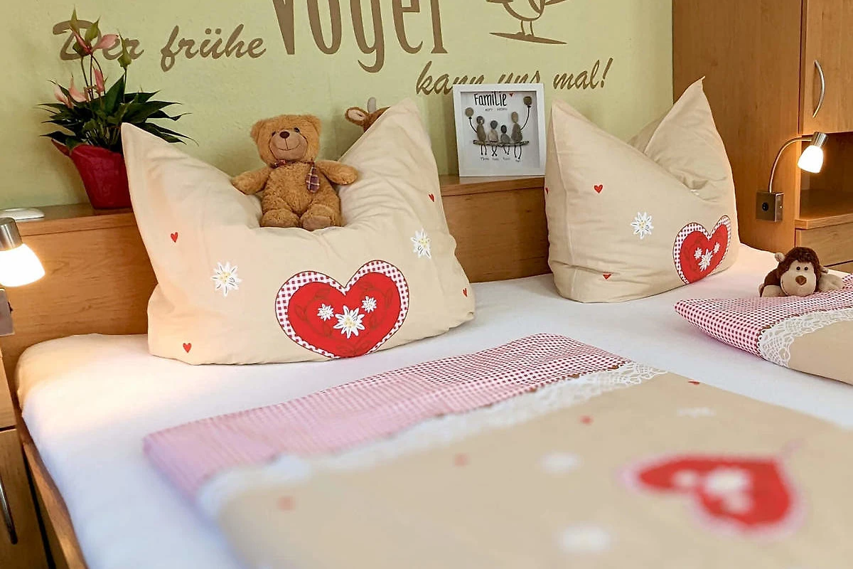 Die 55m² grosse Wohnung befindet sich im 1. Stock des Bauernhauses. Sie eignet sich für 2-4 Personen; ein Beistellbett für eine 5. Person ist möglich.