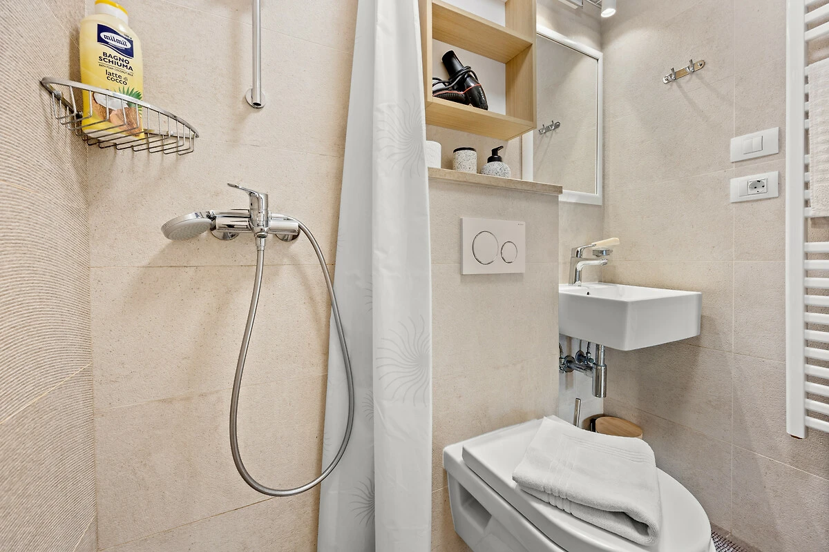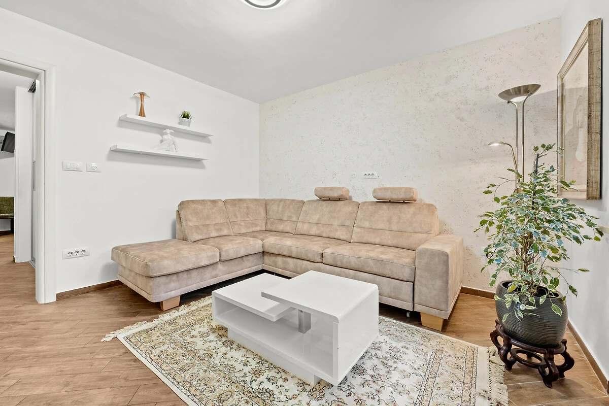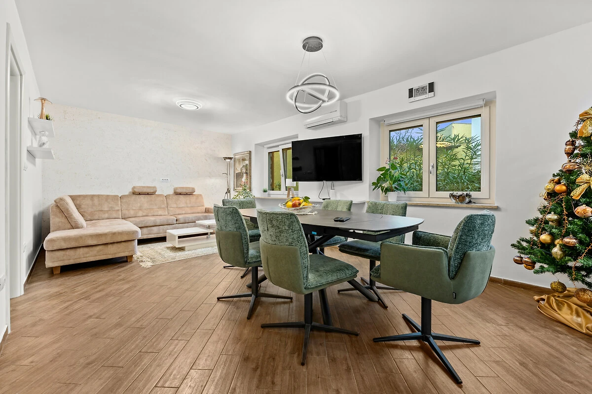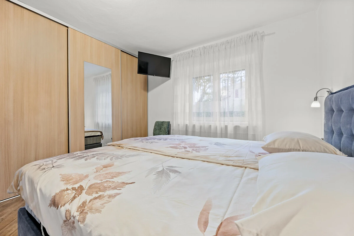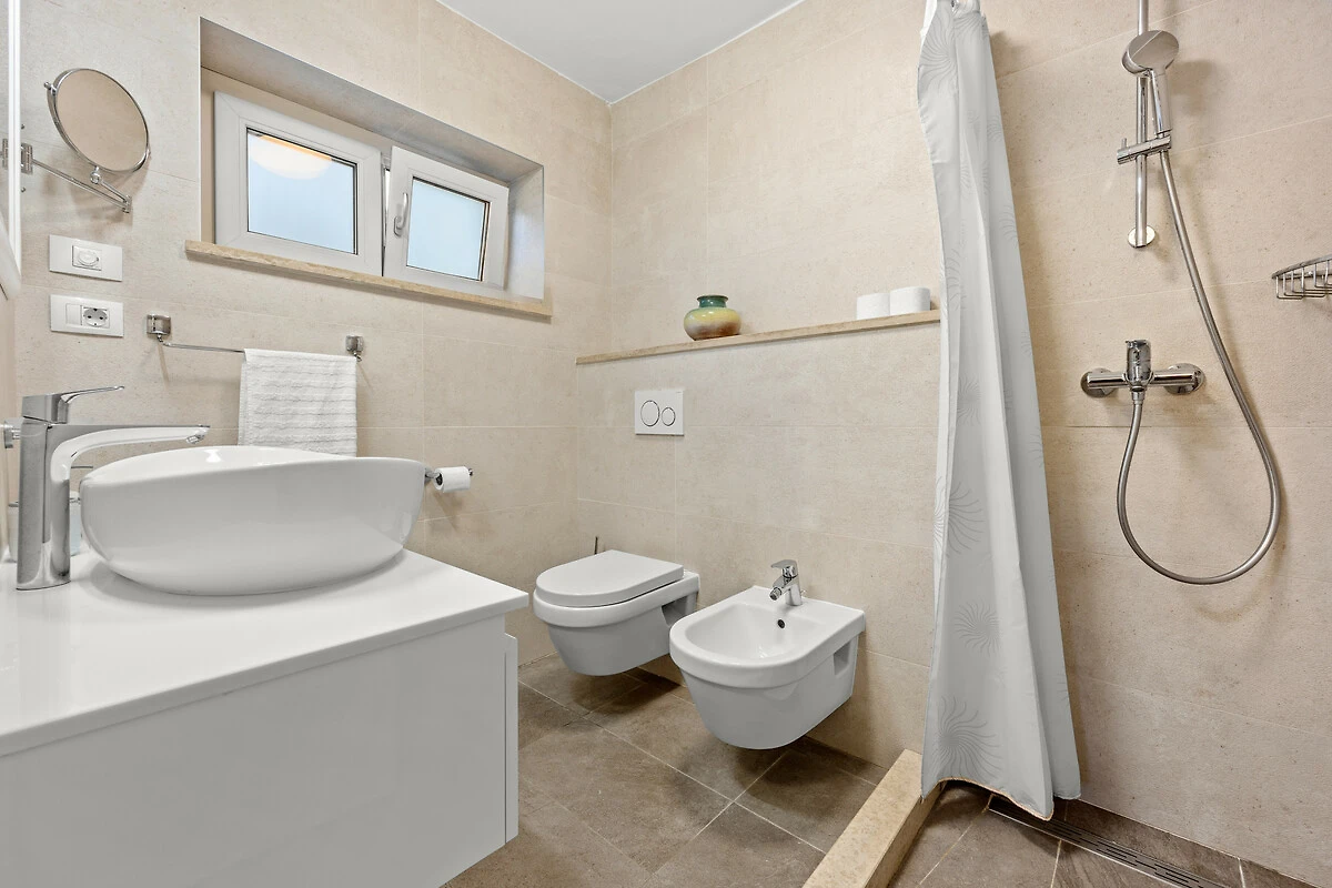 Diese Unterkunft ist am besten für Familien geeignet. Es ist ein Apartment mit drei Schlafzimmern, 2 Badezimmern (eines davon en suite), einer voll ausgestatteten Küche, einem geschmackvoll eingerichteten Wohnzimmer und einer geräumigen Terrasse (20 m2), auf der die Gäste die frische Luft und den Meerblick geniessen können. Das Apartment verfügt über 2 Klimaanlagen und 3 internetfähige Fernseher.
