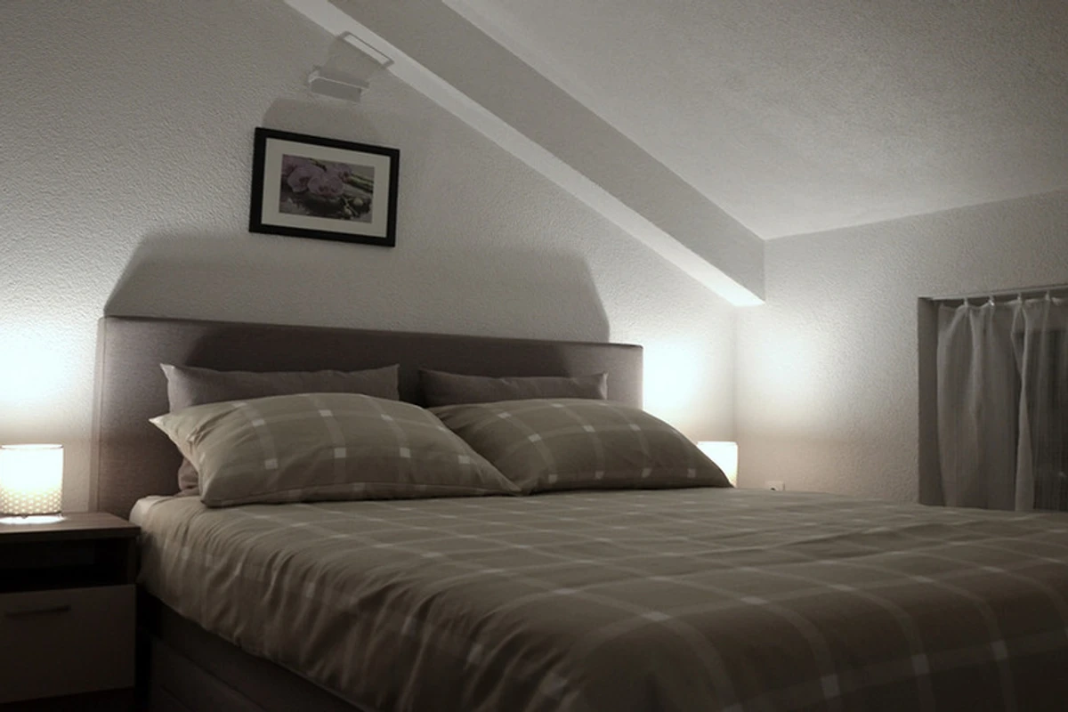 Unser Nichtraucher-Apartment ist hell, geräumig und neu eingerichtet, befindet sich im zweiten Stock eines Ferienhauses mit ca. 60 qm bietet Platz für 4 Personen. Es besteht aus einem offenen Wohnzimmer mit komplett ausgestatteter Küche, Bad/WC mit Dusche, zwei Schlafzimmer mit je einem Doppelbett 160cm x 200 cm.