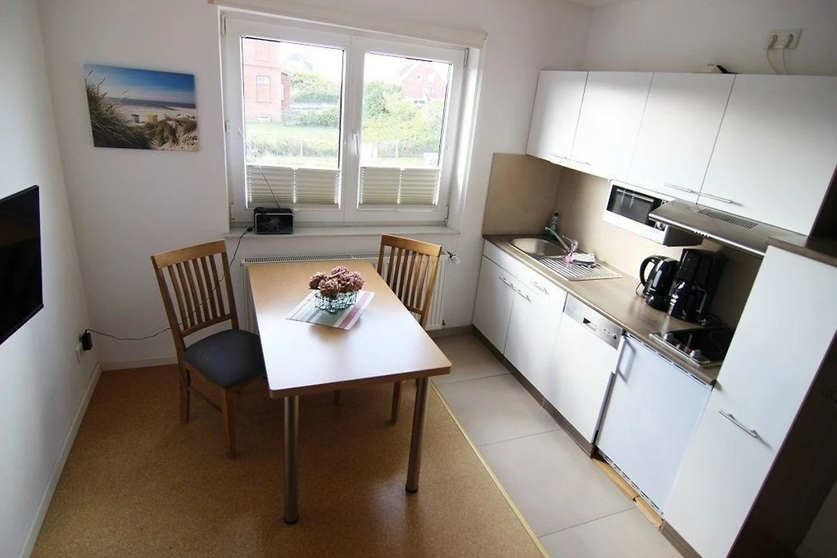Die geräumige Ferienwohnung verfügt über eine moderne Einrichtung und bietet Platz für bis zu 4 Personen. Das helle Wohnzimmer lädt zum Entspannen ein und ist mit einem Flachbildfernseher ausgestattet. Die voll ausgestattete Küche bietet alles, was für die Zubereitung leckerer Mahlzeiten benötigt wird. Der Essbereich ist ideal für gemeinsame Mahlzeiten. Das Schlafzimmer verfügt über ein bequemes Doppelbett und ausreichend Stauraum. Ein weiteres Schlafzimmer bietet zwei Einzelbetten. Das Badezimmer ist mit einer Dusche ausgestattet und sorgt für Erfrischung nach einem langen Tag am Strand. Eine Terrasse lädt zum Entspannen im Freien ein und bietet einen tollen Ausblick auf die Umgebung. Die Ferienwohnung ist ideal gelegen, um die Umgebung zu erkunden und bietet den perfekten Rückzugsort für einen erholsamen Urlaub.