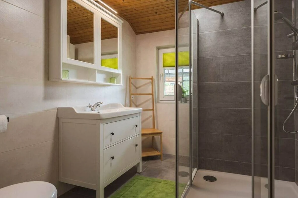 Das moderne Tageslichtbad verfügt neben den üblichen Annehmlichkeiten über eine Dusche 90x90 cm und eine eigene Waschmaschine.