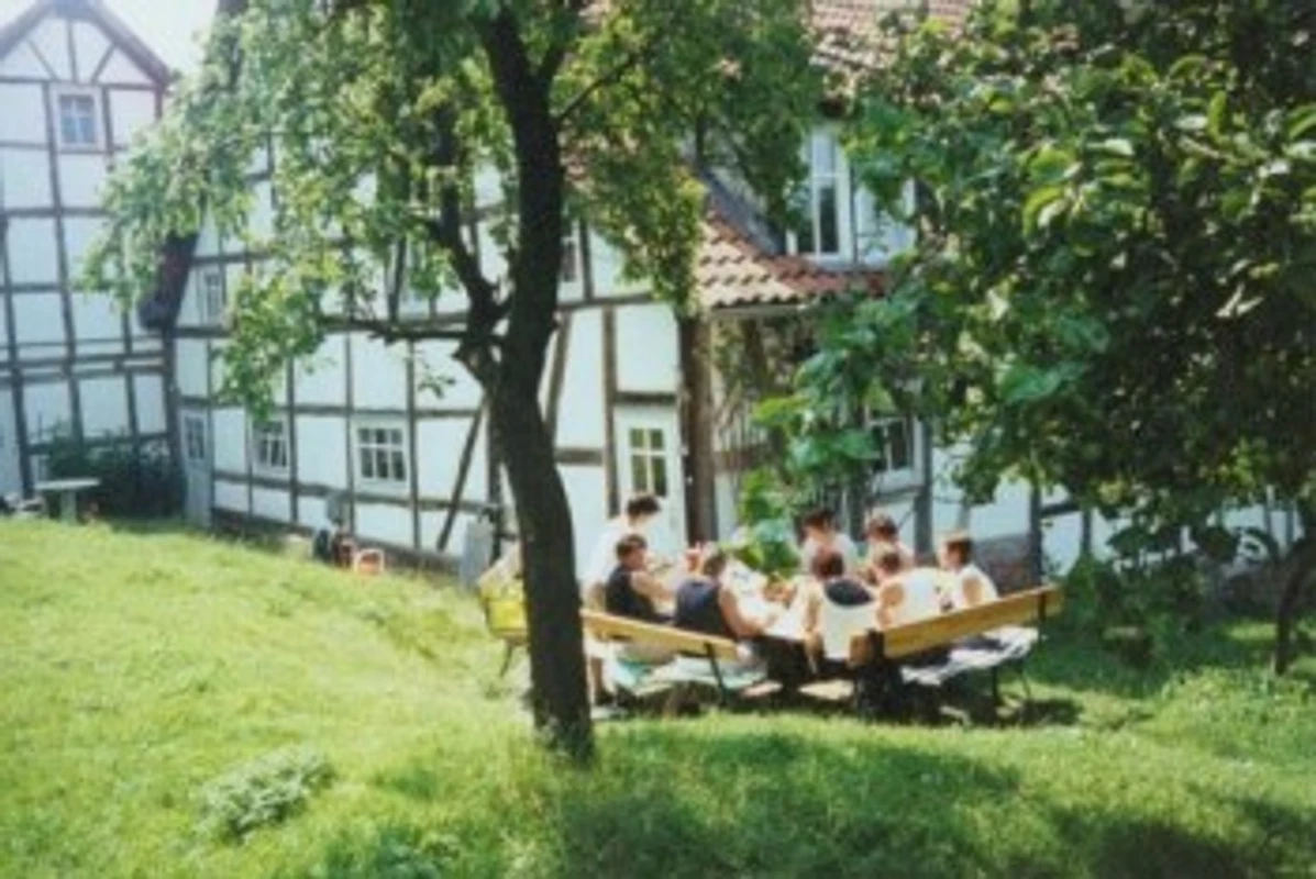Der Haunehof liegt in der Nähe des kleinen Bahnhofs Haunetal-Neukirchen und ist somit auch gut für alle Gruppen mit dem Zug zu erreichen. Sowohl das Gästehaus, bis zu 14 Betten, wie auch die Ferienwohnung, bis zu 6 Betten, können einzeln wie auch zusammen gemietet werden. Die Häuser sind ausgebaute Fachwerkhäuser, welches im Inneren der Häuser für eine gemütliche Atmosphäre sorgt. Beide Häuser sind voll ausgestattet mit Selbstversorgerküchen. Das Gästehaus verfügt über einen großen Gruppenraum sowie ein ausgebautes Dachgeschoss, welches sehr gut als Seminarraum oder Entspannungsraum, sowie bei Bedarf auch für zusätzliche Schlafplätze genutzt werden kann. Die Ferienwohnung verfügt über einen sehr hohen und atmosphärischen Gruppenraum und ist Workation geeignet (höhenverstellbarer Schreibtisch, extra Bildschirm, gutes WLAN). Im Innenhof gibt es viele Sitzmöglichkeiten, einen großen argentinischen Grill (Parilla) sowie einen Sandkasten und eine Tischtennisplatte. Im Erdgeschoss kann nach Absprache zudem ein Freizeitraum mit Beamer genutzt werden. Auf der großen Obstbaumwiese mit Nuss-, Äpfel-, Pflaumen- und Kirschbäumen gibt es zudem eine große Feuerstelle mit Grillplatz. Auf der Wiese tummeln sich auch ein paar Kamerunschafe aus Afrika. Überdies bietet der Haunehof einen Kanuverleih an, die Flussstrecken liegen auf der Haune und Fulda. Haunetal gehört zum Biosphärenreservat Rhön. Die Umgebung bietet vom Wandern zur Burgruine Hauneck, den Langen Steinen oder ins Rote Moor, über den Hochseilgarten in Schlitz, Begehung des Kalibergs bei Heringen, Sommerrodelbahn auf der Wasserkuppe, Stadtbummel in der Barockstadt Fulda, bis hin zur Grenzgedänkstätte Point Alpha eine Fülle an Freizeitaktivitäten. In den Sommermonaten lohnt sich auch ein Besuch der Bad Hersfelder Festspiele (vorher reservieren) mit Theater-, Musical- und Konzertaufführungen.