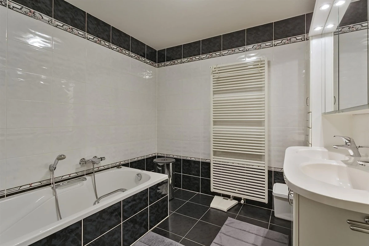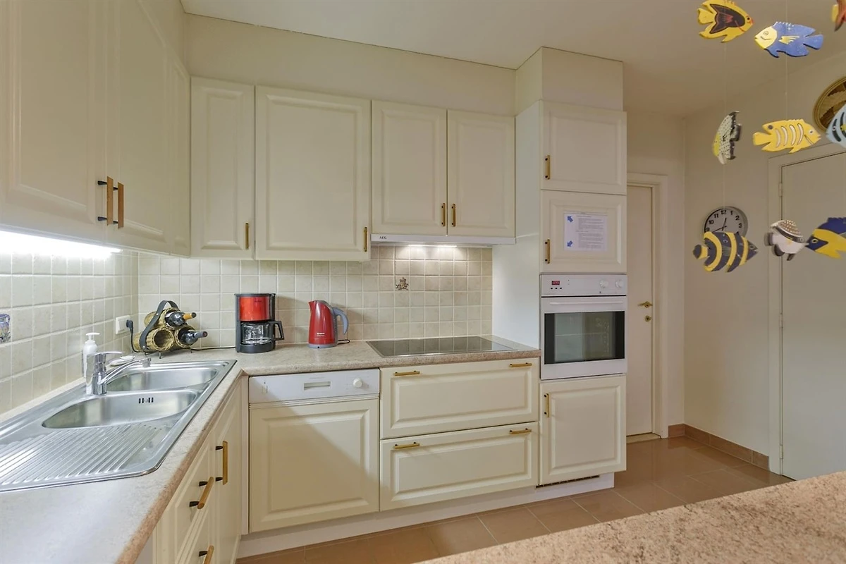 Die auf Komfort ausgelegte Wohnung verfügt über eine voll ausgestattete Küche mit modernen Geräten, die eine problemlose Zubereitung von Mahlzeiten gewährleistet. Das Badezimmer verfügt über eine Badewanne, ein Doppelwaschbecken und eine Toilette für zusätzlichen Komfort. Ein Abstellraum mit Waschmaschine und Wäschetrockner bietet zusätzlichen Komfort und macht diese Wohnung zu einem gut ausgestatteten zweiten Zuhause.