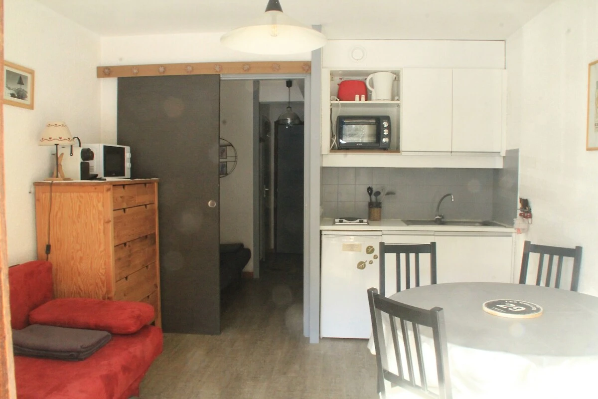 Das Studio verfügt über eine voll ausgestattete offene Küche mit modernen Geräten, darunter Kühlschrank, Gefrierschrank, Nespresso-Kaffeemaschine, Backofen, Wasserkocher, Mikrowelle und Toaster. Das Badezimmer ist mit Dusche und WC ausgestattet. Für zusätzlichen Komfort stehen optionale Leistungen wie Bettwäsche und Handtücher, Endreinigung und WLAN gegen Aufpreis zur Verfügung. Gäste müssen eine Kurtaxe und eine Kaution entrichten, die nach der Abreise zurückerstattet wird. Das Studio ist ein idealer Ausgangspunkt für Wintersport und Entspannung in den atemberaubenden französischen Alpen.